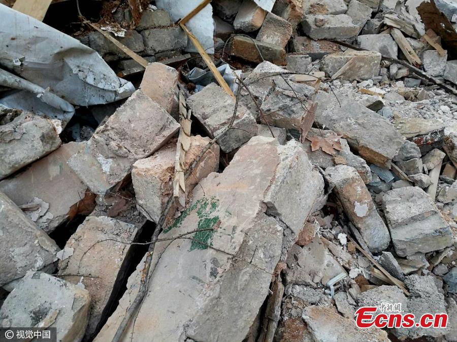 City wall bricks from the Ming Dynasty (1368-1644) are scattered at a site where illegal buildings are being demolished in Nanjing City, the capital of East China’s Jiangsu Province, Dec. 28, 2016. The bricks will be collected and saved to be used in the renovation of the city wall in Nanjing that dates back to the Ming Dynasty. (Photo/CFP)