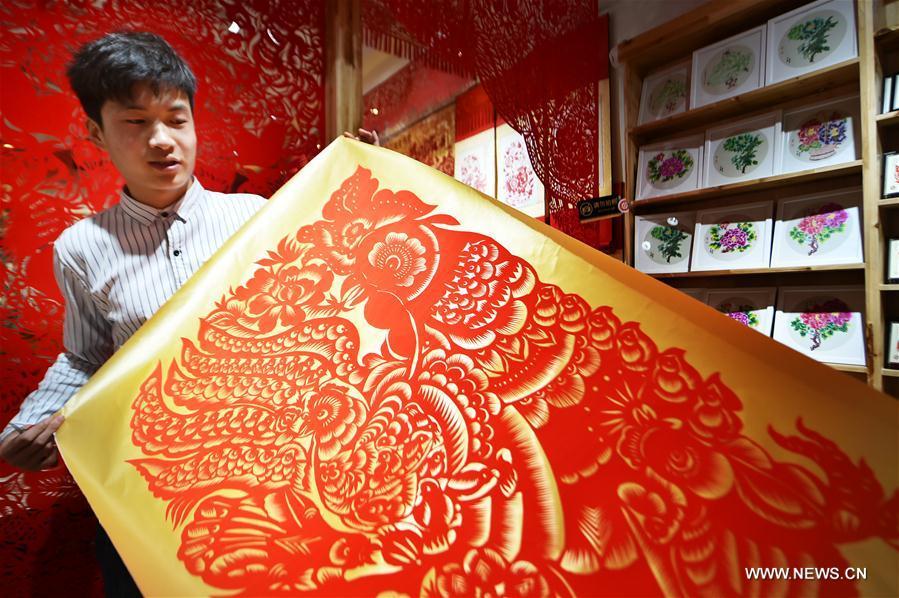 Chang Yangyang, a young folk artist, shows his papercutting works of a rooster and a hen in Mengjin County, central China's Henan Province, Dec. 29, 2016. The Chinese will celebrate the lunar new year, or Spring Festival, on Jan. 28, 2017. Spring Festival this time marks the beginning of the Year of Rooster, according to the Chinese zodiac that assigns one of the 12 animals to each year. (Xinhua/Huang Zhengwei)