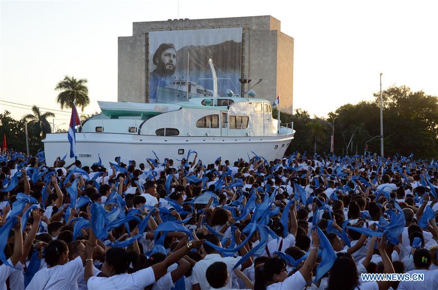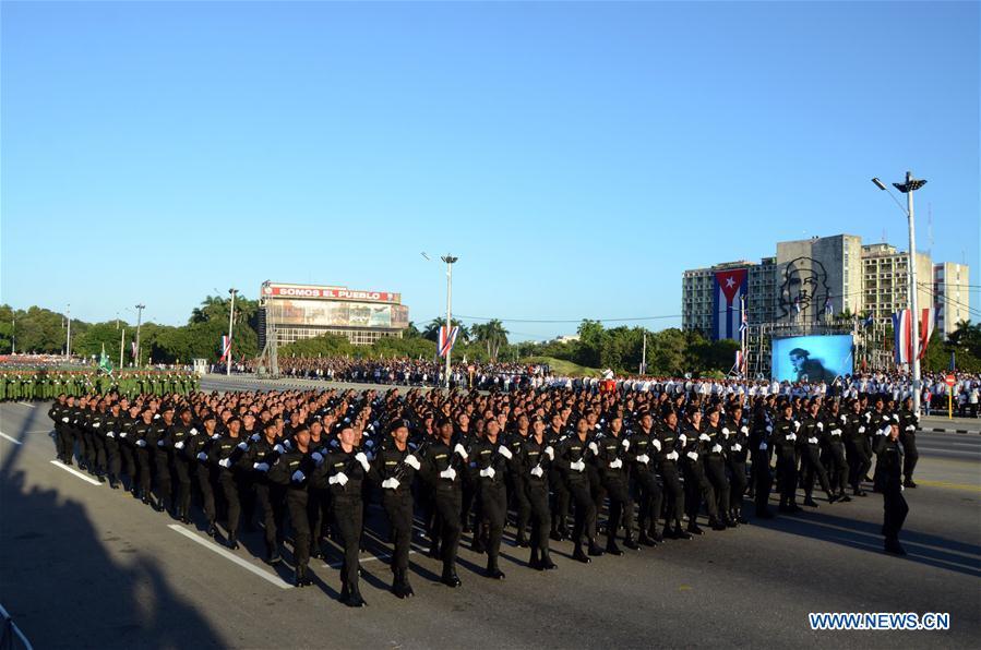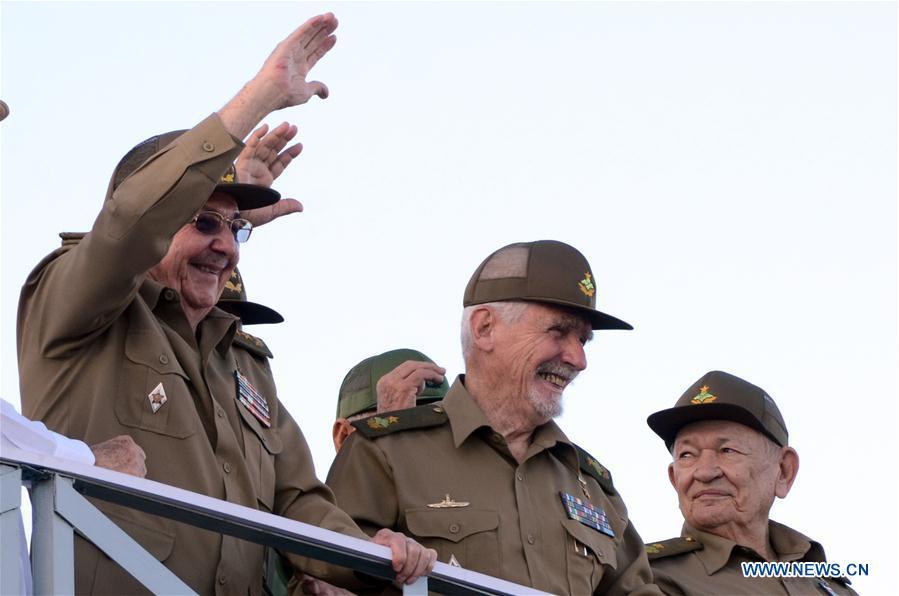 Soldiers march during a military parade at the Jose Marti Revolution Square in Havana, Cuba, on Jan. 2, 2017. Thousands of Cubans participated in a military and civic rally on Monday in homage to the late leader Fidel Castro in Havana's Revolution Square. Jan. 2 also marks the 60th anniversary of the landing of the Granma yacht, considered the beginning of the guerrilla war against dictator Fulgencio Batista. (Xinhua/Joaquín Hernandez)
