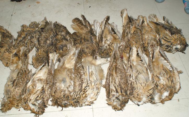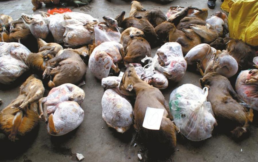 Body parts of wild animals under state protection are seized in Mianyang City, Southwest China's Sichuan Province. After about half a year’s investigation, local police detained six people suspected of collecting and selling rare and endangered species. Police also seized nearly 200 head pieces of wild animals and a total of two tons of animal products. (Photo/West China Metropolis Daily)