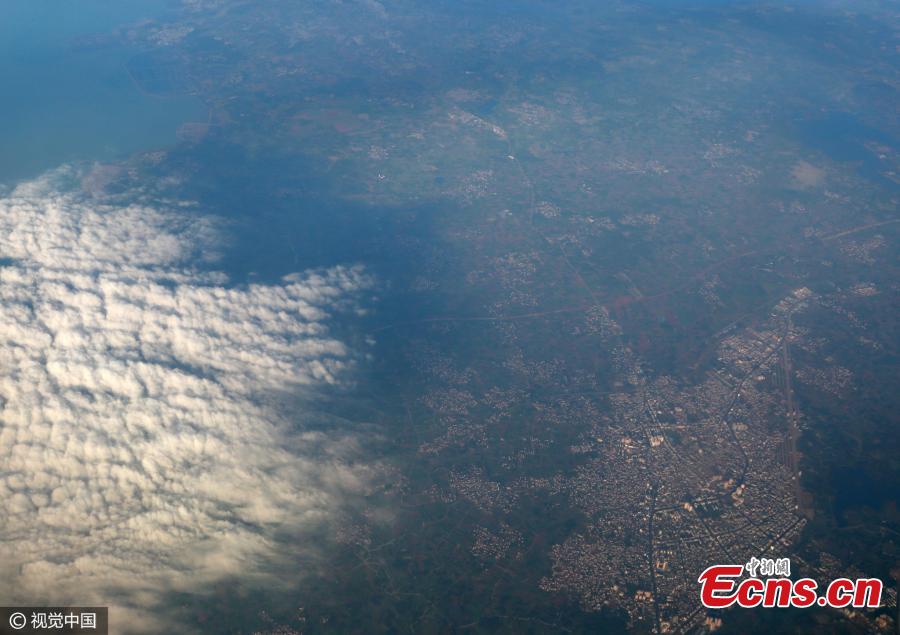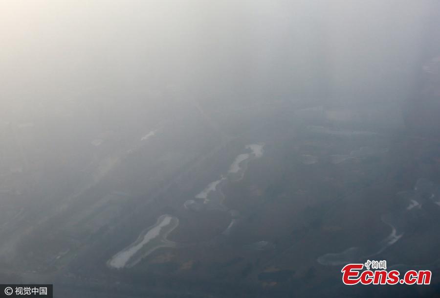 Photos taken on flights from Sanya City in Hainan Province to Hangzhou City in Zhejiang Province, and then to Beijing show different air conditions above the three cities, Jan. 4, 2017. Sanya recorded blue sky while both Hangzhou and Beijing showed serious air pollution. (Photo/CFP)