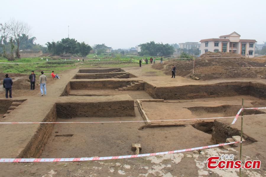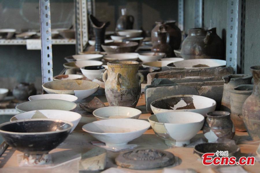 Artifacts unearthed at Handongcheng ruins in Yongchuang District, Southwest China’s Chongqing Municipality, Jan. 6, 2017. Over 1,200 ancient artifacts, including some made of porcelain, stone, bronze, and bone, have been found in the third excavation. The ruins over an area of 400,000 square meters date back to Song Dynasty (960-1279). (Photo: China News Service/Su Hong)