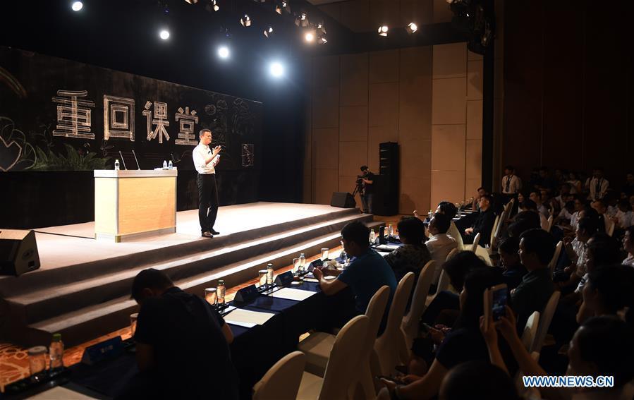 Jack Ma, founder and chairman of China's e-commerce giant Alibaba, speaks at the "Back to Class" event held by Jack Ma Foundation in Sanya, south China's Hainan Province, Jan. 6, 2017. A total of 100 rural teachers selected by the foundation as 2016 "Jack Ma Rural Teacher Initiative" winners attended the event on Friday. (Xinhua/Yang Guanyu)