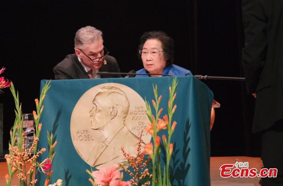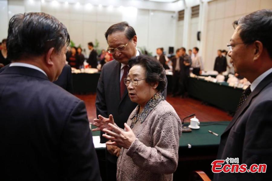 Zhao Zhongxian, an expert in high temperature superconductors, and herbal expert Tu Youyou received the State Preeminent Science and Technology Award for 2016. The award comes with a cash prize of 5 million yuan ($721,000). (Photo: China News Service/Liao Wenjing)