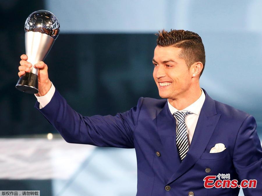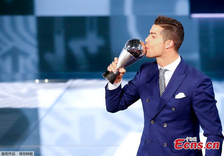 Cristiano Ronaldo celebrates with the trophy at FIFA Awards Ceremony in Zurich, Switzerland on January 9, 2017. (Photo/Agencies)