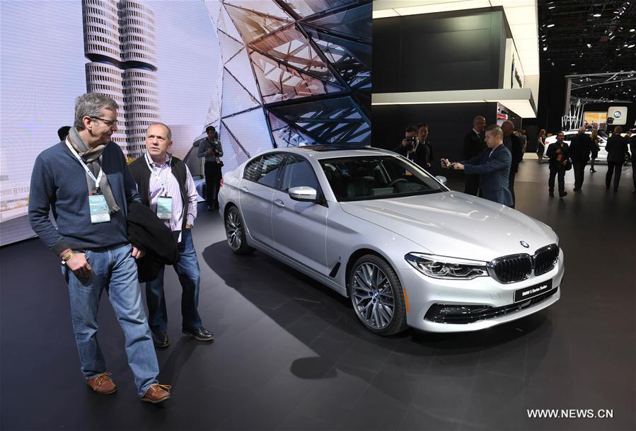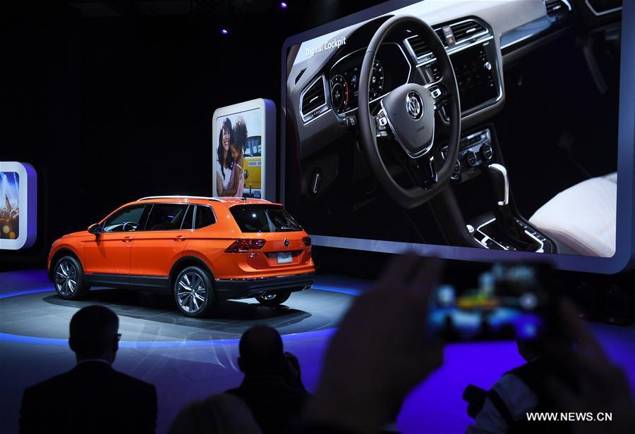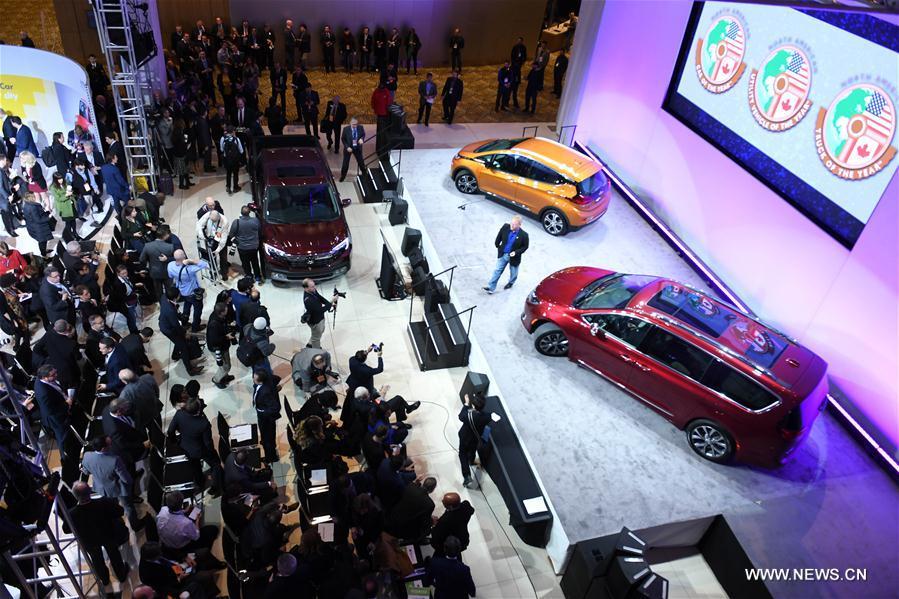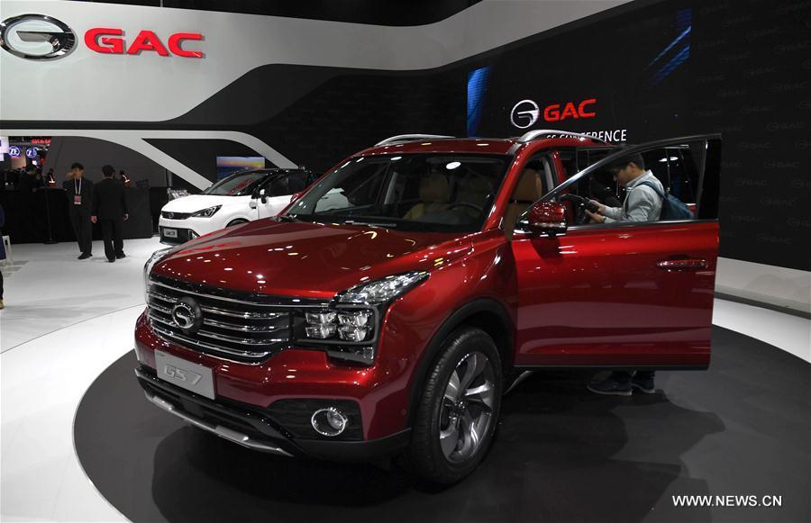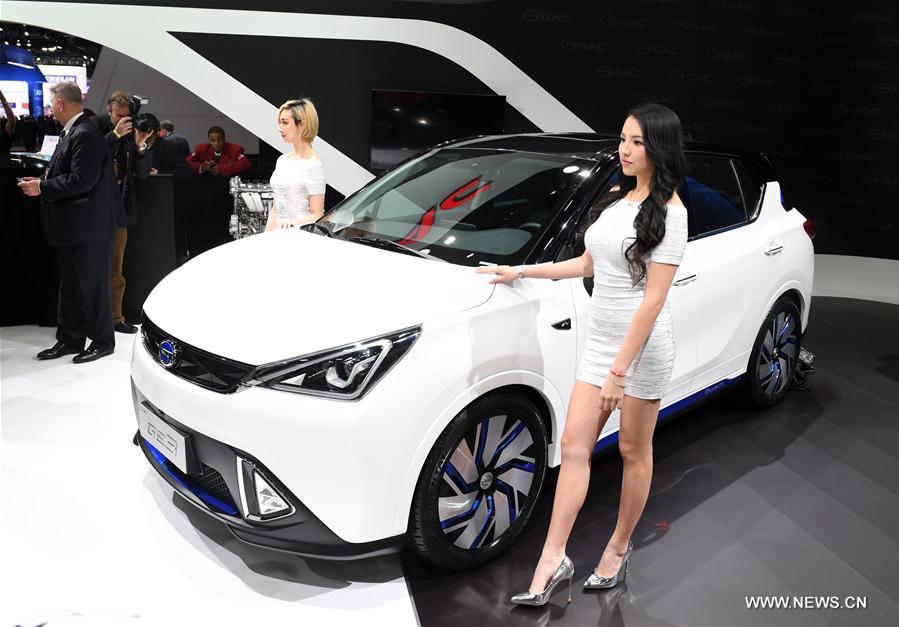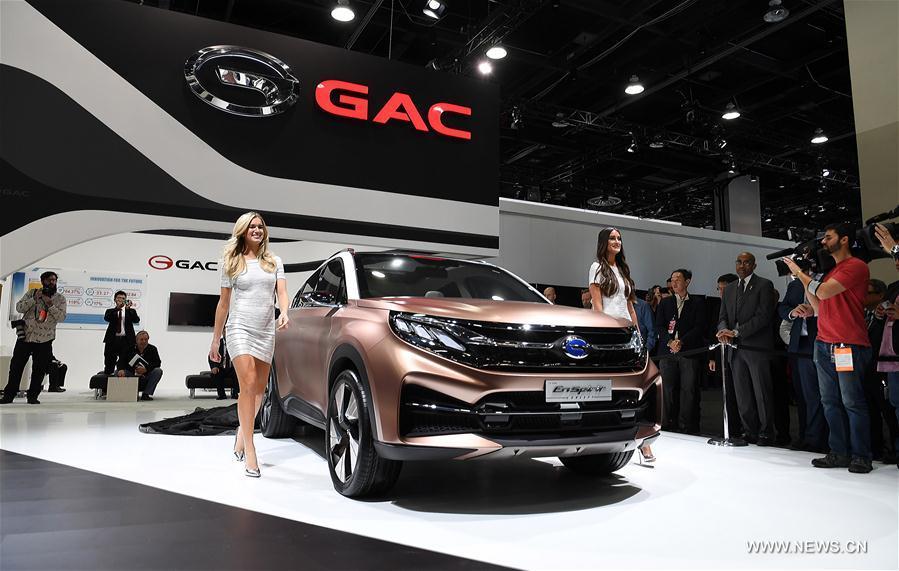 China's Guangzhou Automobile Group Motor (GAC Motor) makes debut of Trumpchi electric SUV GE3 during the 2017 North American International Auto Show (NAIAS) in Detroit, the United States, Jan. 9, 2017. (Xinhua/Yin Bogu)