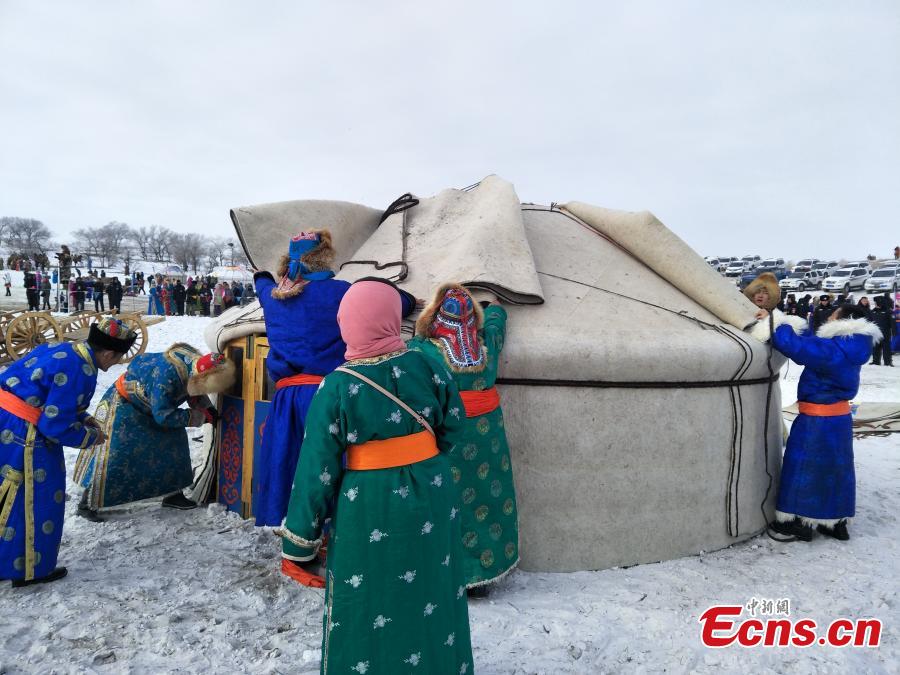 A Naadam festival themed on camels is held in West Ujimqin Banner, Xilingol League, North China’s Inner Mongolia Autonomous Region, Jan. 9, 2017. The Naadam festival is a traditional display of strength, horsemanship and marksmanship. Despite low temperatures of minus 20 degrees centigrade, many visitors and Mongolians attended the festival. (Photo: China News Service/Wu Yana)