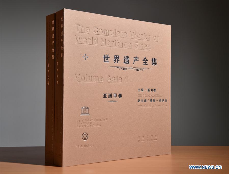 Chief editor Ge Jianxiong (L) and photographer Zhou Jiansheng introduce the creation of the book "The Complete Works Of World Heritage - Volume Asia" in Beijing, capital of China, Jan. 11, 2017. "The Complete Works Of World Heritage Sites - Volume Asia", published by Qingdao Publishing House, debuted at Beijing Book Fair on Wednesday in Beijing. (Xinhua/Li He)