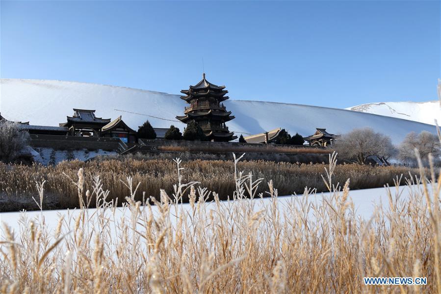 Snow scenery of Crescent Spring and Singing Sand Dune (1/5)