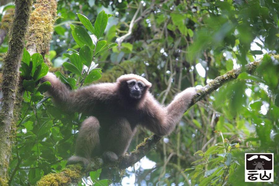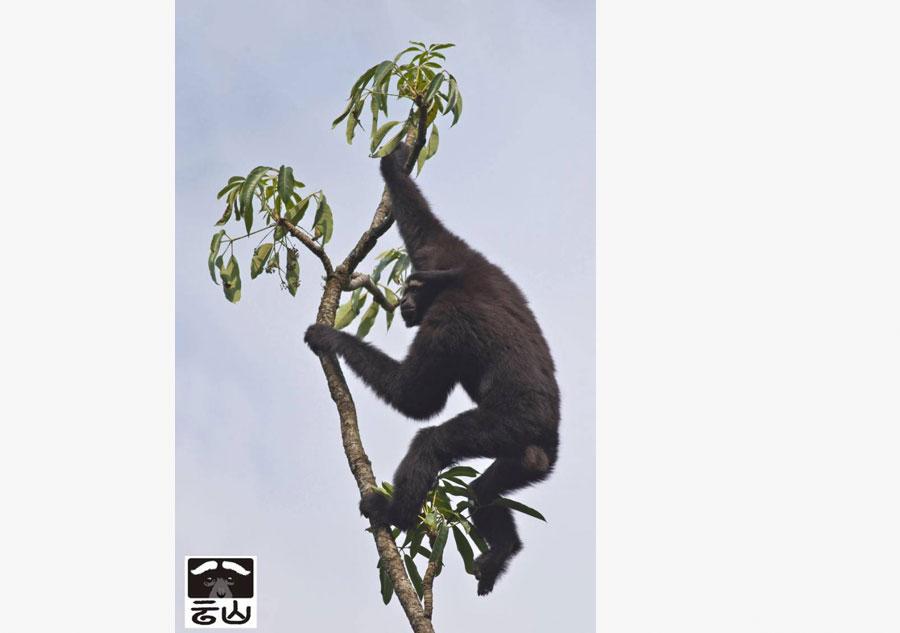 A white-browed gibbon living in the Gaoligong Mountain (Gaoligongshan) National Nature Reserve in Southwest China's Yunnan Province. (Photo by Zhao Chao/Provided to chinadaily.com.cn)
