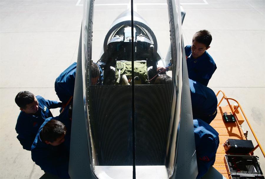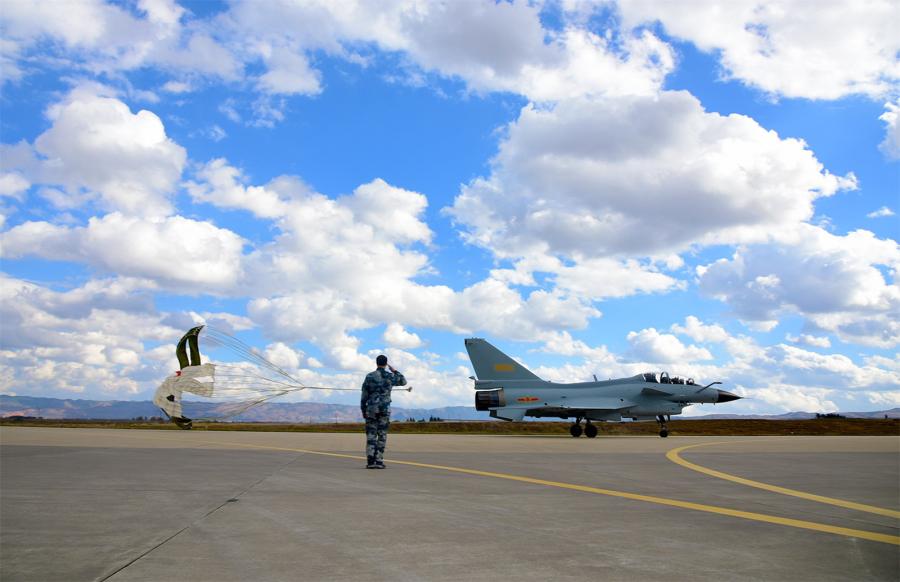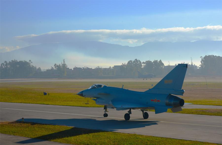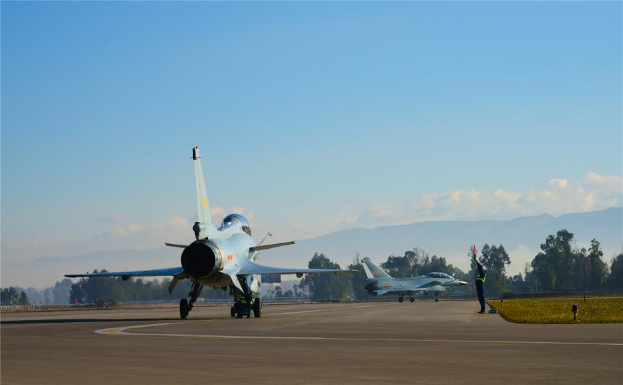 Two J-10A fighter jets assigned to an aviation regiment of the air force under the PLA Southern Theater Command taxi on the runway before taking off on a military airfield during a flight training exercise at an undisclosed area in southwest China’s Yunnan Province on Jan. 10, 2017. (81.cn/ Wei Jinxin)