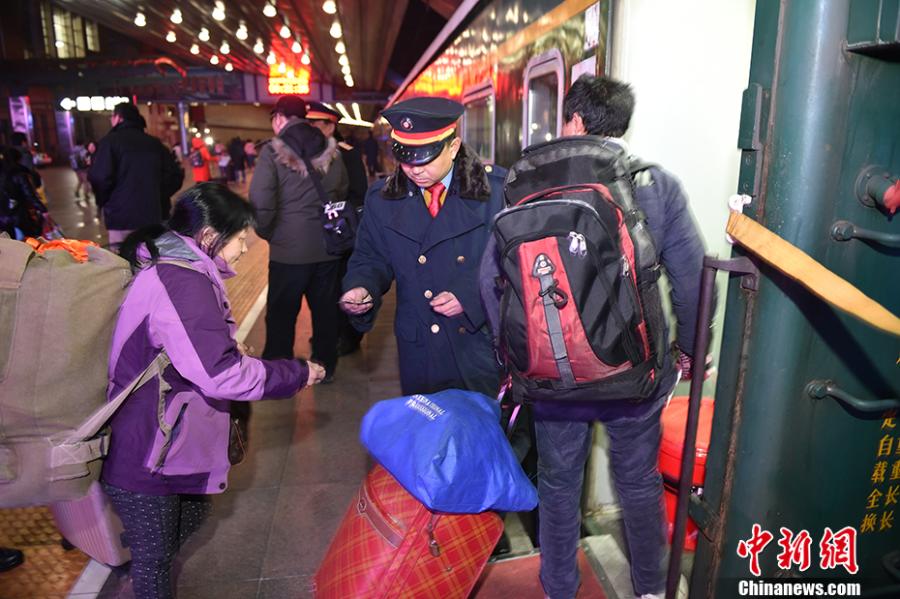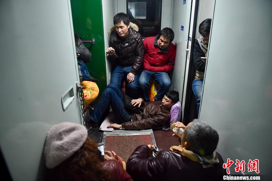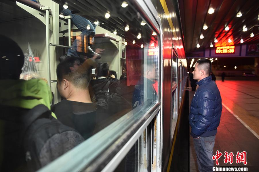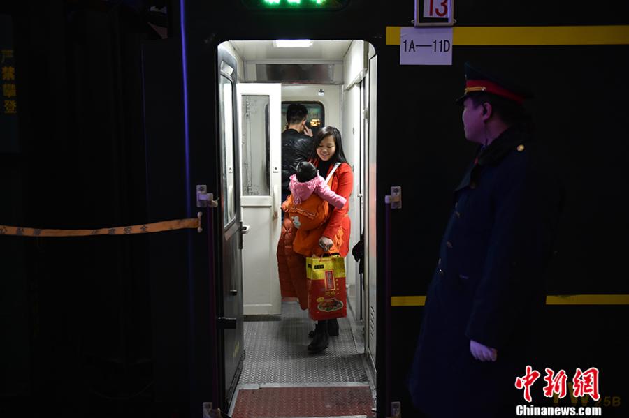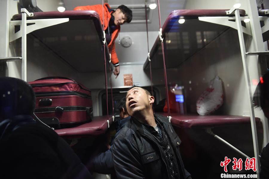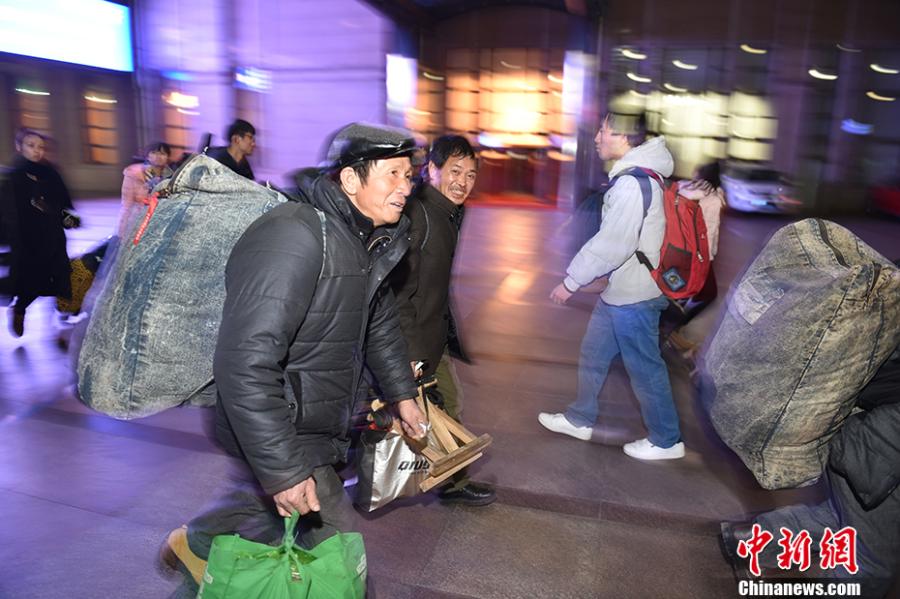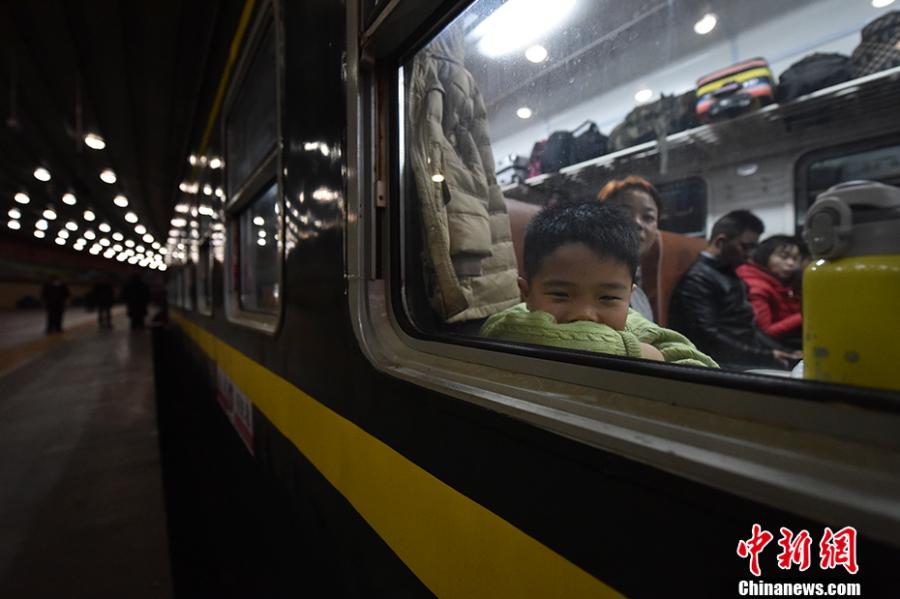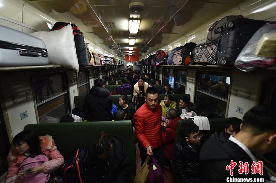 Passengers making their way to their hometowns for Spring Festival, China’s Lunar New Year, travel by train at a railway station in Beijing, Jan. 13, 2017. China entered its peak travel period on Friday in the lead-up to this most important festival. A total 2.98 billion trips will be made nationwide during the annual travel peak, which lasts from Jan 13 to Feb 21, up 2.2 percent year-on-year. (Photo: China News Service/Jin Shuo)