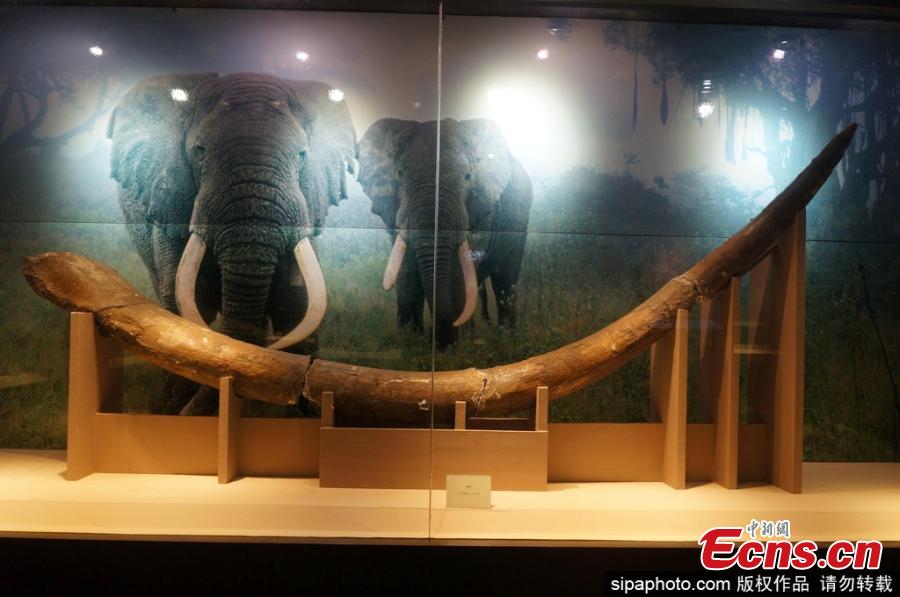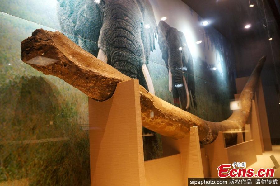 Ivory fossil on display at a museum in Huaibei City, East China’s Anhui Province, Jan. 13, 2017. Measuring 3.4 meters in length, the longest ever found in China, it dates back to 50,000 years ago. (Photo/Sipaphoto)