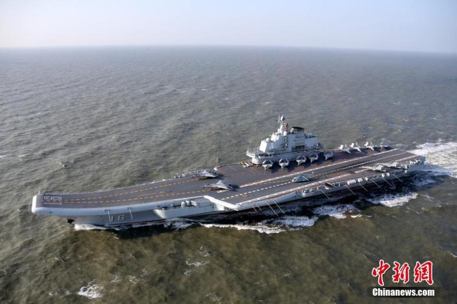 Chinese aircraft carrier Liaoning returns to Qingdao, China after Pacific drill, January 13th, 2017. Comprised of aircraft carrier Liaoning, a number of destroyers, some J-15 carrier-based fighter jets and helicopters, the fleet sailed through the Bohai Sea, the Yellow Sea, the East China Sea and the South China sea. (Photo: China News Service/Mo Xiaoliang)