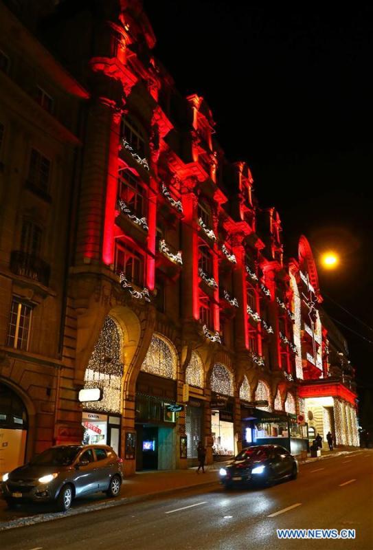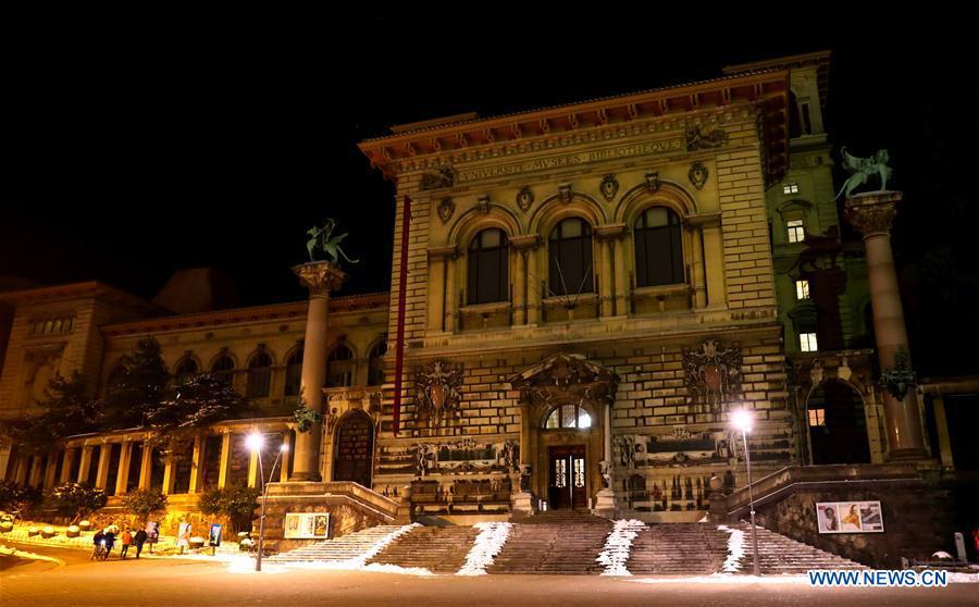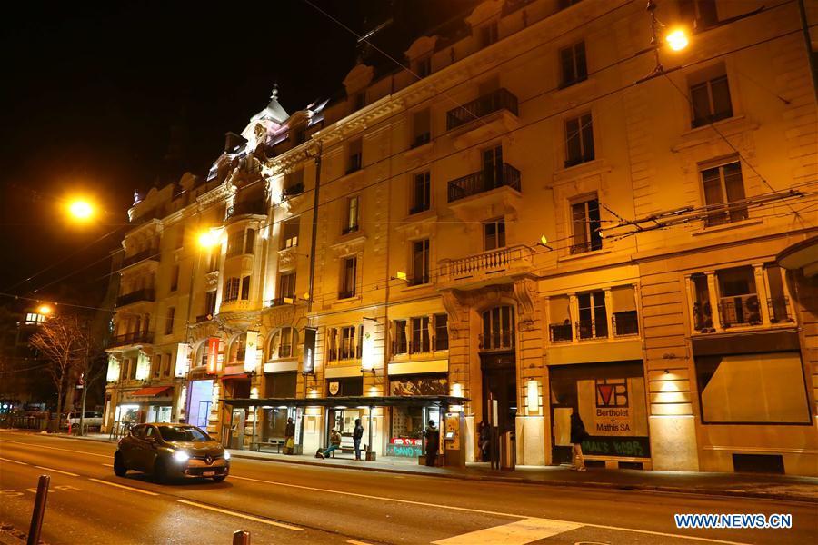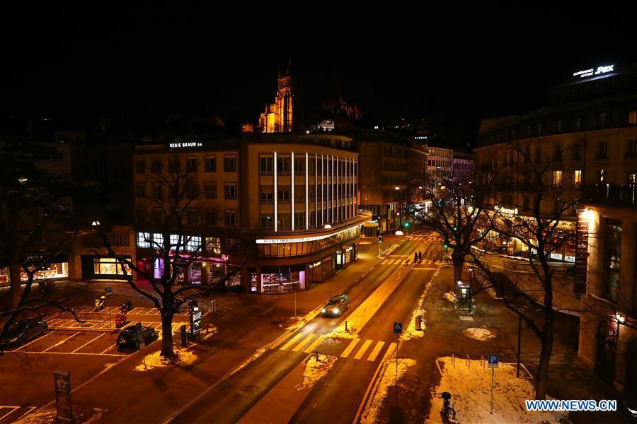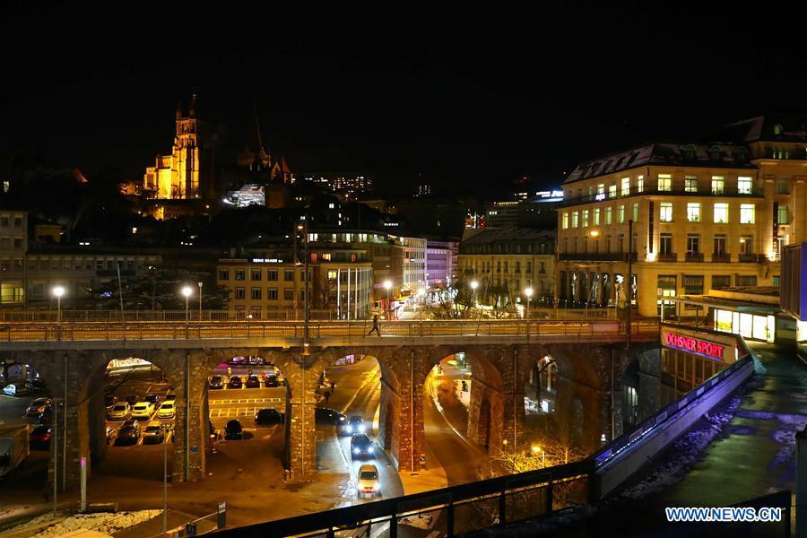 Photo taken on Jan. 16, 2017 shows a night view of Lausanne, Switzerland. (Xinhua/Gong Bing)