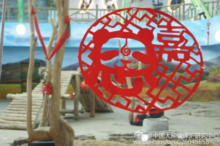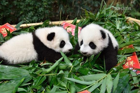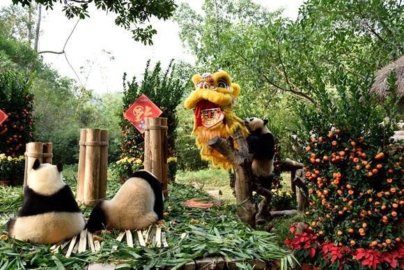 Giant pandas play during an event to celebrate the upcoming Spring Festival, China’s Lunar New Year, at the Chimelon Safari Park in Guangzhou City, South China’s Guangdong Province. The China Giant Panda Protection and Research Center has organized various celebrations at panda centers or parks around the country for the festival. (Photo/Weibo of China Giant Panda Protection and Research Center)