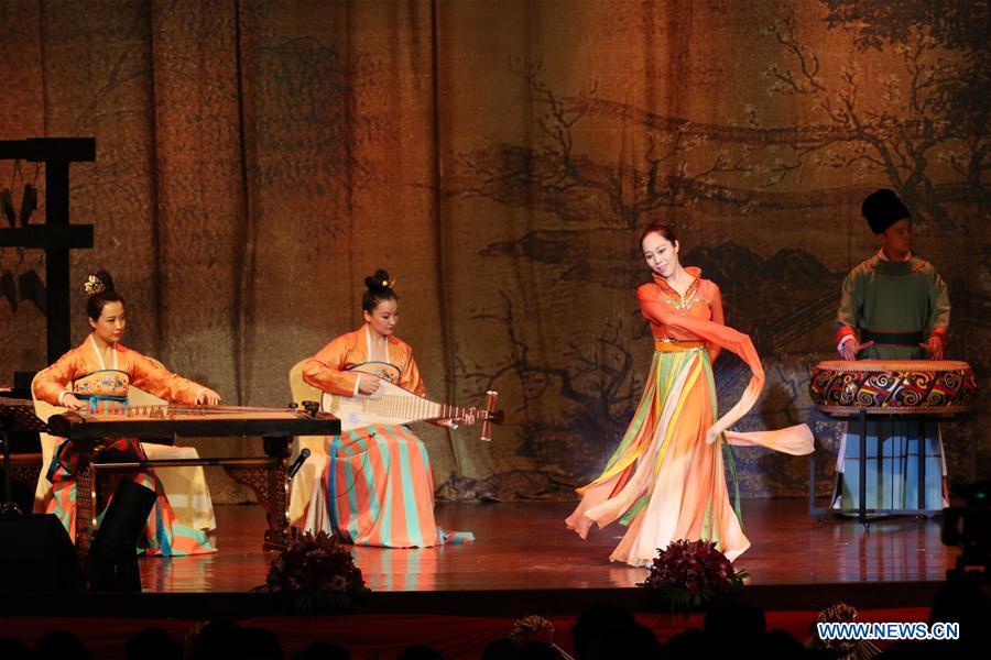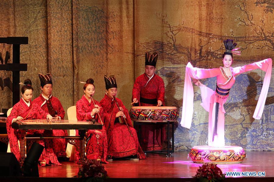Artists from the Huaxia Ancient Music Orchestra of China's Henan Museum performed traditional dances and music here Tuesday night to celebrate upcoming Chinese New Year, or Spring Festival.