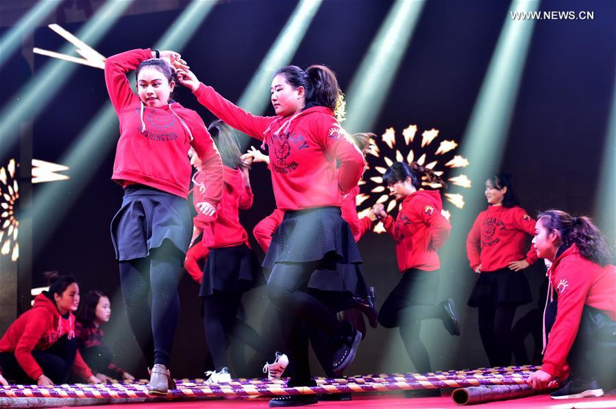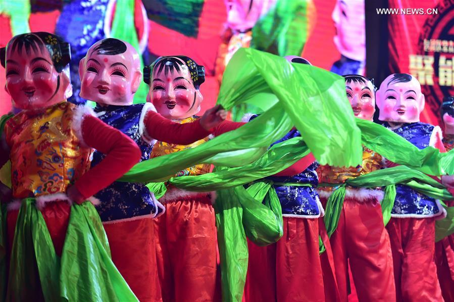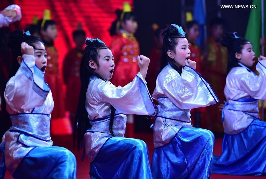 Children perform poetry recitation at a community Spring Festival gala in Hefei City, east China's Anhui Province, Jan. 18, 2017. Residents from Changqing Subdistrict in Hefei staged a community Spring Festival gala to welcome the upcoming Lunar New Year. (Xinhua/Liu Junxi)