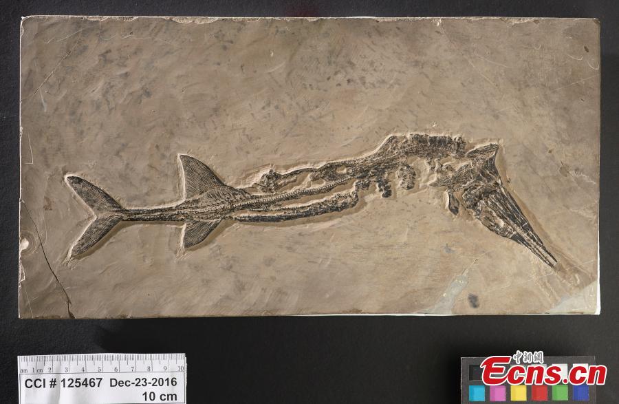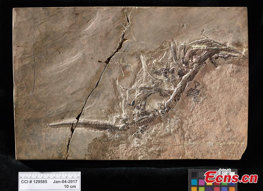 Two marine fossils dating to the Triassic period more than 200 million years ago have been returned to China. The significant heritage objects being returned are a 220-million year old Saurichthys fish fossil from China’s Guizhou province, an early Ichthyosaur fossil, likely dating to the early Triassic period (252–247 million years ago) originating from China, and a pair of carved wooden roof supports from southwestern China. These objects were illegally exported from China and were detained in Canada by the Canada Border Services Agency and the RCMP. China claimed these objects as their cultural property and requested their return. (Photo/Agencies)