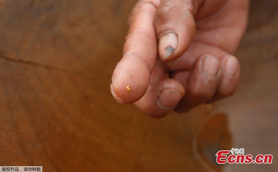 In this Jan. 19, 2017 photo, a local prospector displays a fleck of gold on his finger that was panned in the Klong Thong, or "Golden Canal" in Prachuap Khiri Khan Province, Southern Thailand. The canal, expanded by devastating flash floods, has been washing up gold for villagers whose businesses have been swept away. (Photo/Agencies)