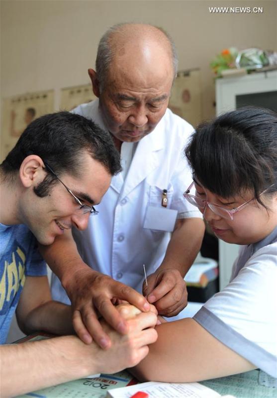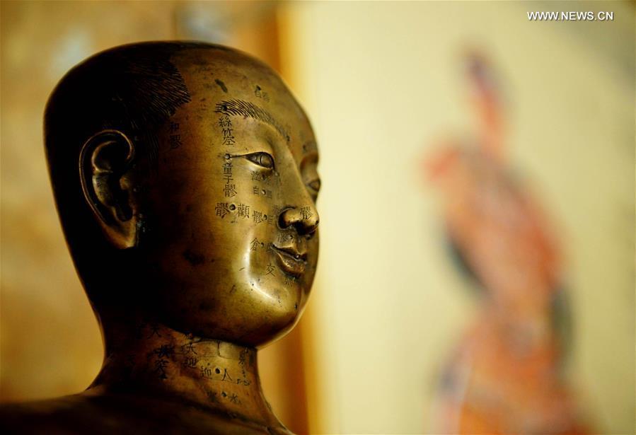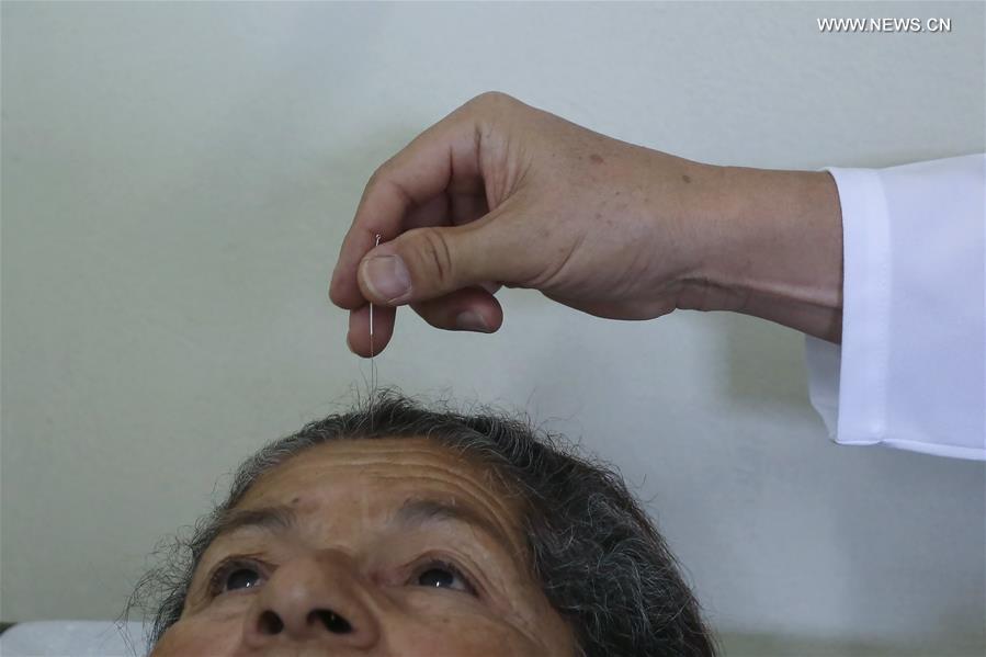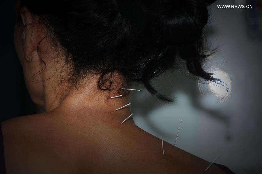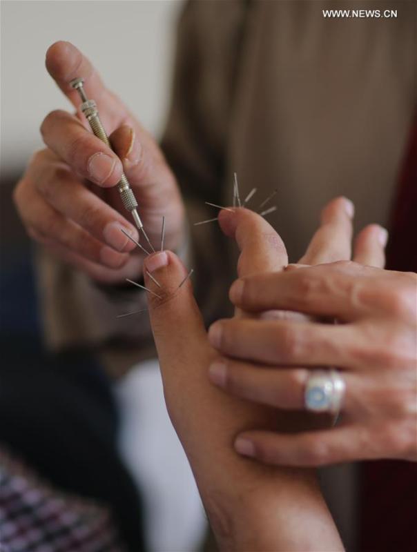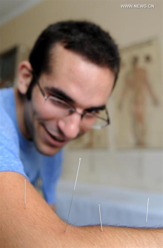 A Palestinian patient receives acupuncture treatment in Gaza City on May 7, 2013. Chinese President Xi Jinping presented a bronze acupuncture statue on Jan. 18, 2017 to the World Health Organization (WHO) in Geneva, Switzerland, which shows acupuncture points on the human body. According to the WHO, 103 members have given approval to the practice of acupuncture and moxibustion, with 29 having enacted special statutes on traditional medicine, and 18 having included acupuncture and moxibustion treatment in their medical insurance provisions. (Xinhua/Wissam Nassar)