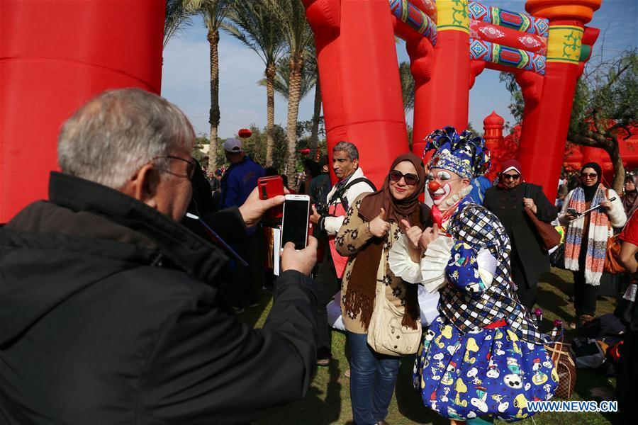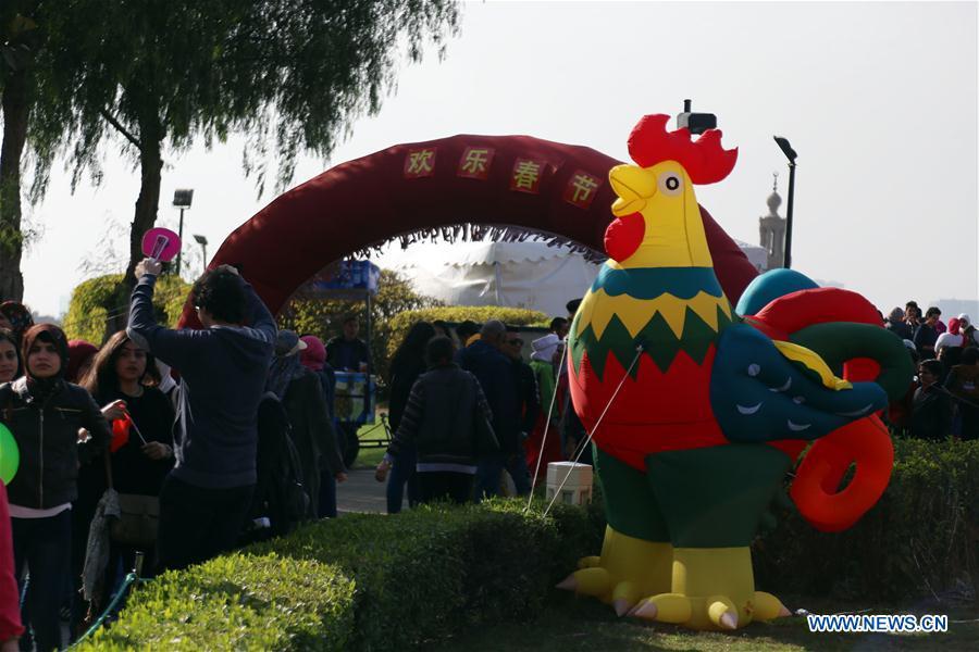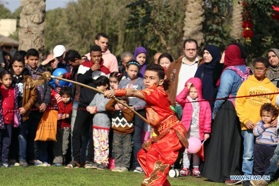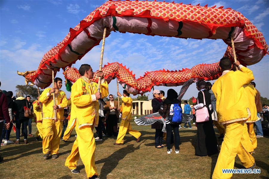 People perform Chinese dragon dance at a temple fair celebrating the Chinese lunar new year in Cairo, capital of Egypt, Jan. 20, 2017. (Xinhua/Ahmed Gomaa)