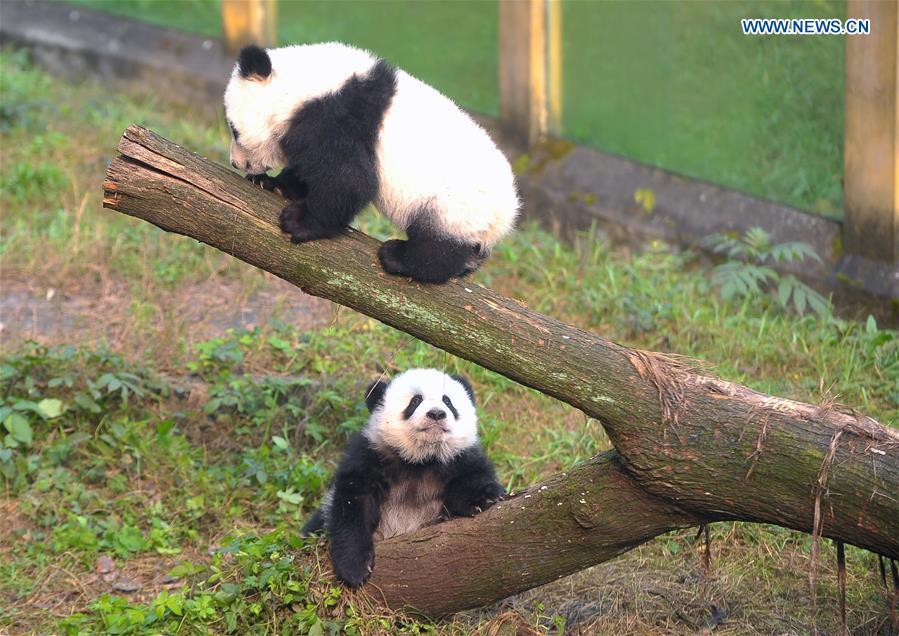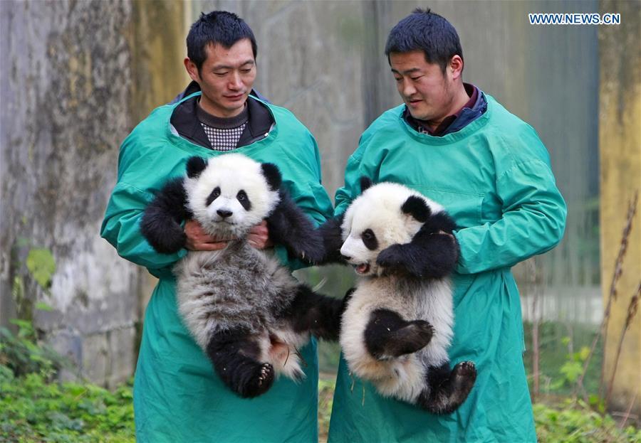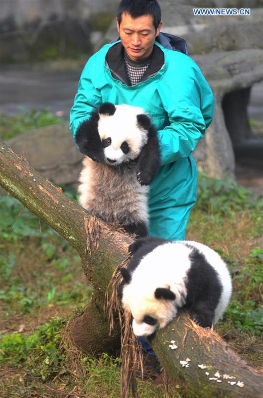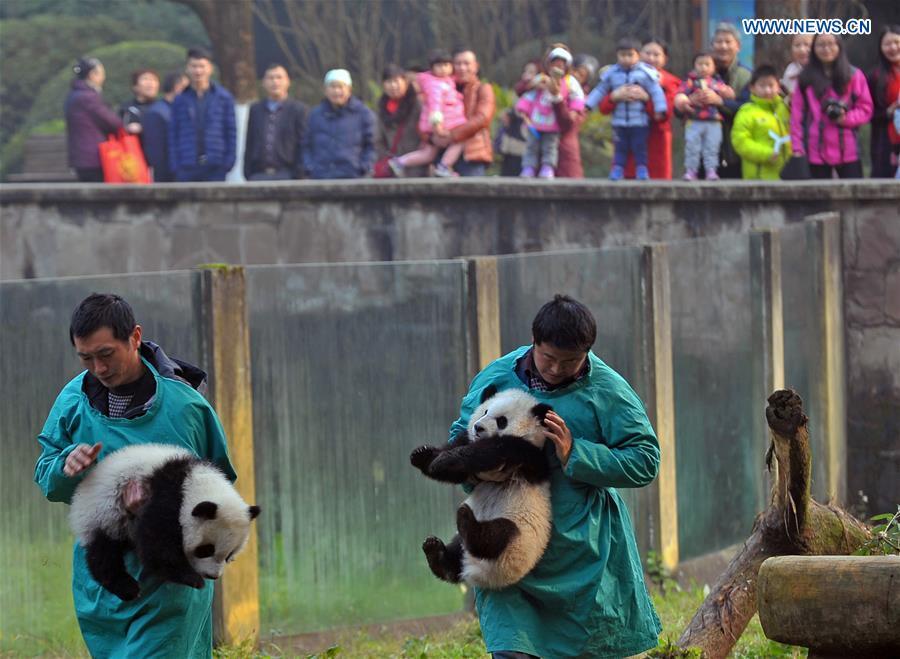 Giant panda twin cubs meet public in Chongqing(1/4)