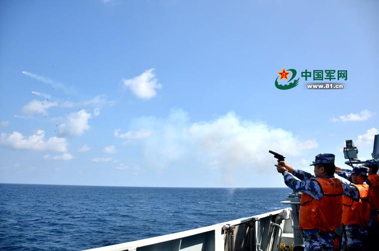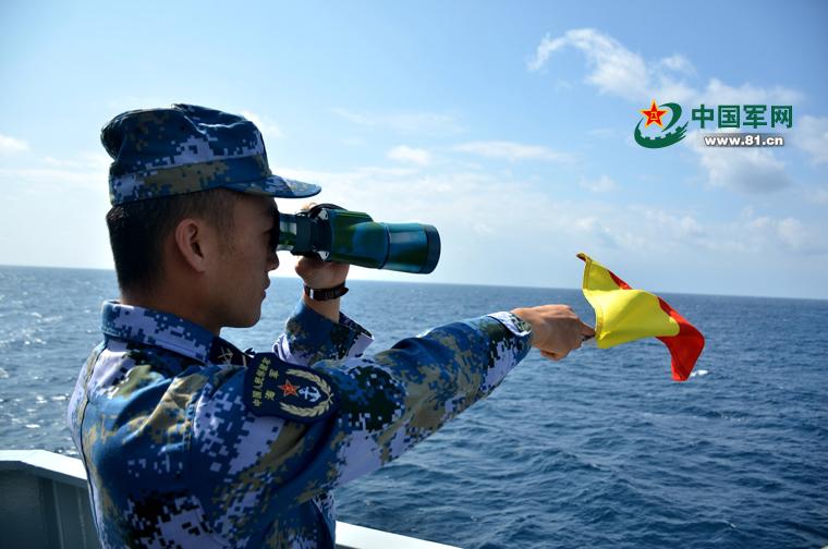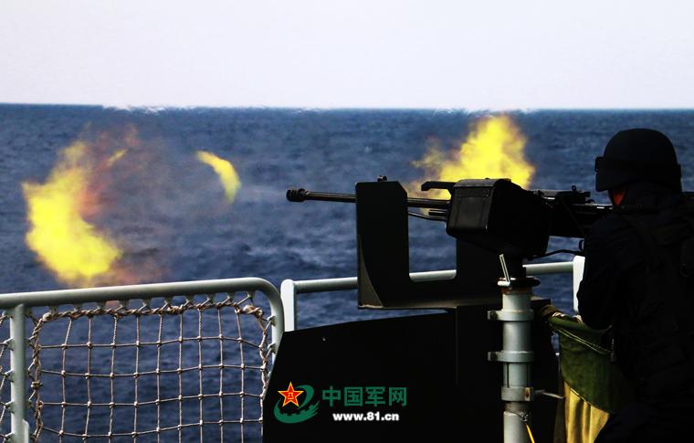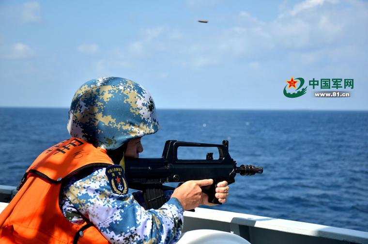 A sailor aboard the guided-missile frigate Hengyang (Hull 568) sights in on simulated maritime targets with a QBZ-95B assault rifle during a live-fire drill of using weapons held by the 25th Chinese naval escort taskforce in the waters of the Gulf of Aden on Jan. 22, 2017.