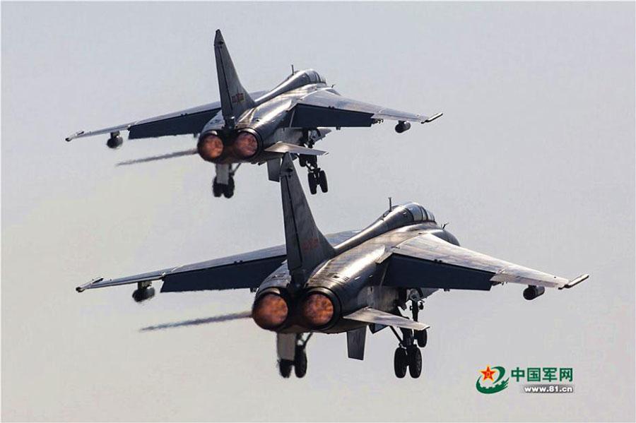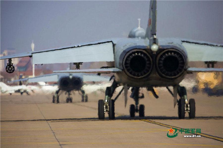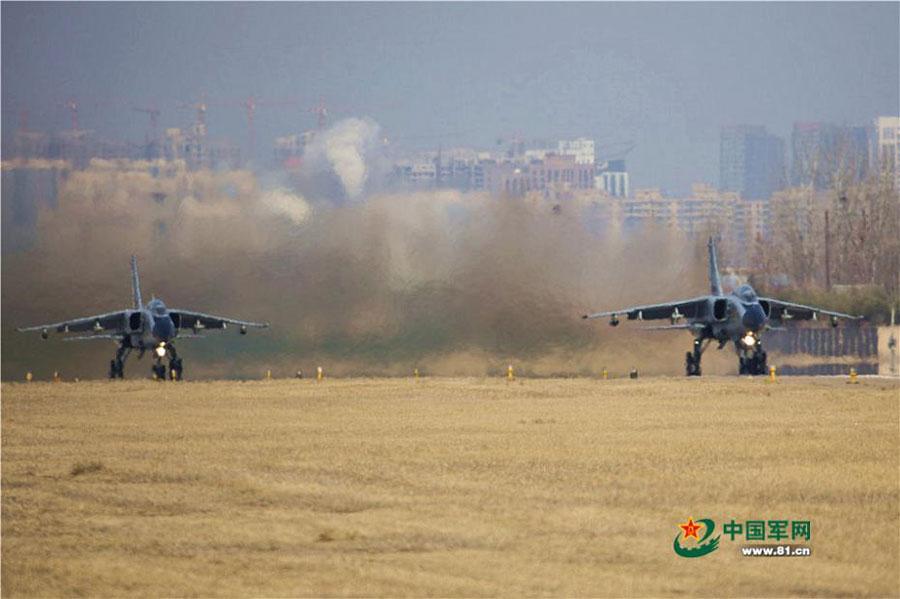 Xian JH-7 fighter jets of the Northern Theater Command under People's Liberation Army (PLA) get ready to take off during an air force drill on January 23, 2017. The China-made Xian JH-7, also known as the FBC-1 (Fighter/Bomber China-1) Flying Leopard, is a two-seater, twin-engine fighter-bomber. (Photo/81.cn)
