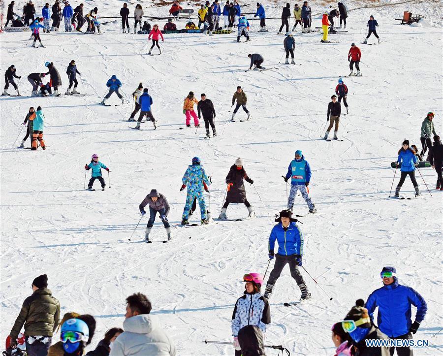 Tourists take part in a winter fishing event in Kangping County of Shenyang City, capital of northeast China's Liaoning Province, Jan. 5, 2017. Liaoning, a province with severe winter weather, has devoted great efforts to promote winter tourism, a bright spot in the local economy. (Xinhua/Yang Qing)