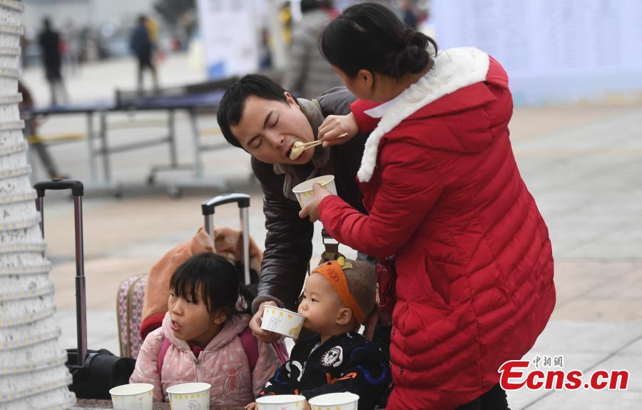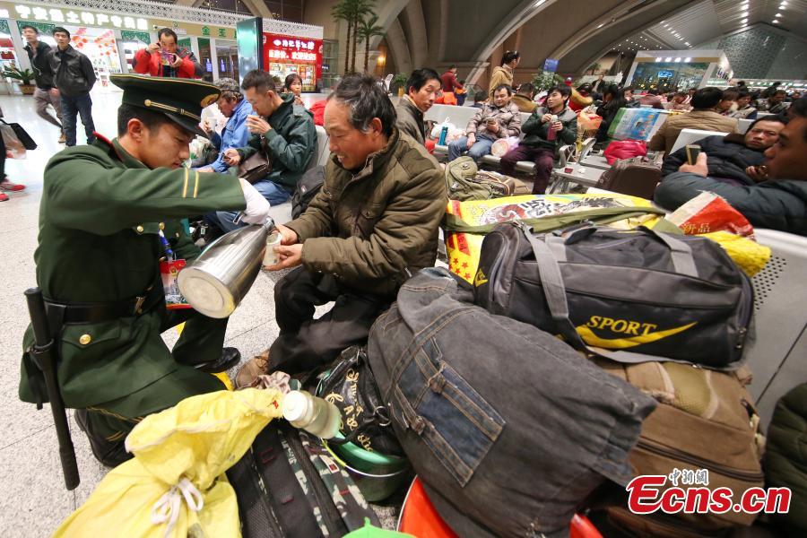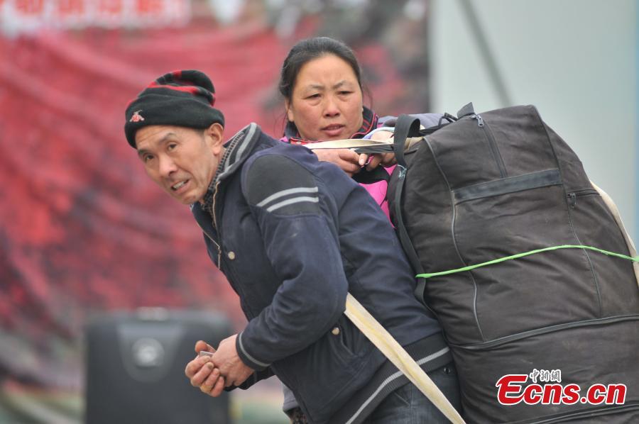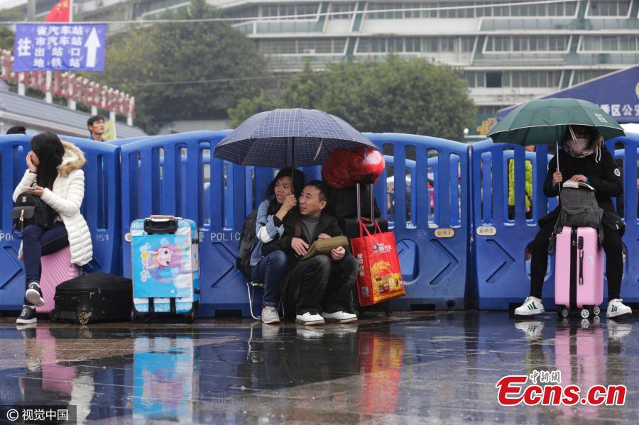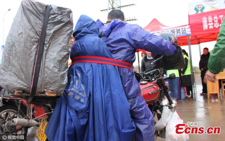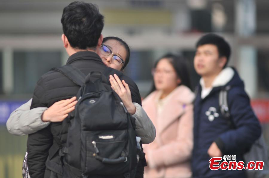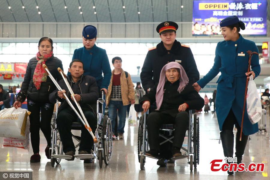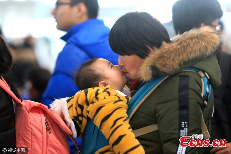 Millions of people are on their way to their hometowns for Spring Festival, China’s Lunar New Year. Here are some photos highlighting touching moments from the journey during what is the country's biggest annual festival.(Photo: China News Service/Chen Chao)