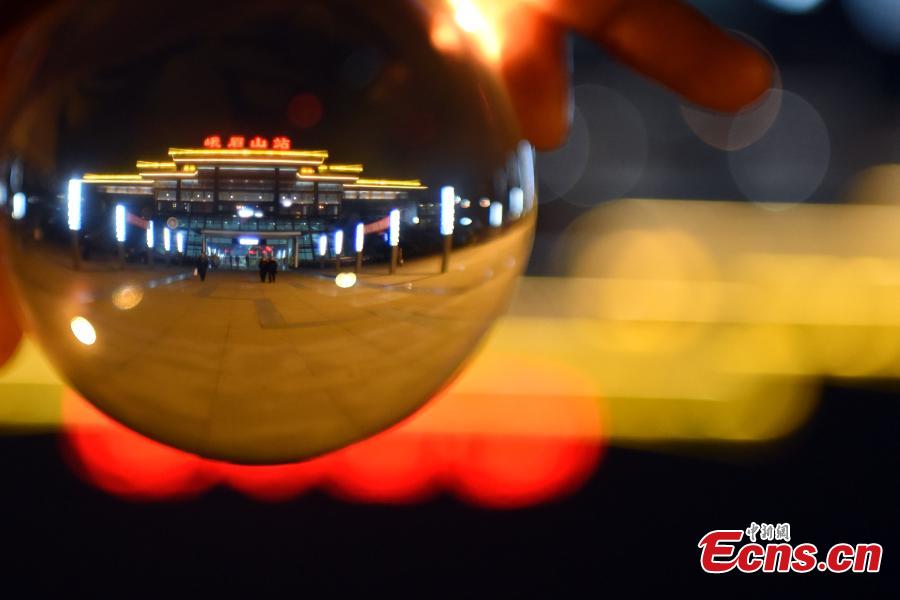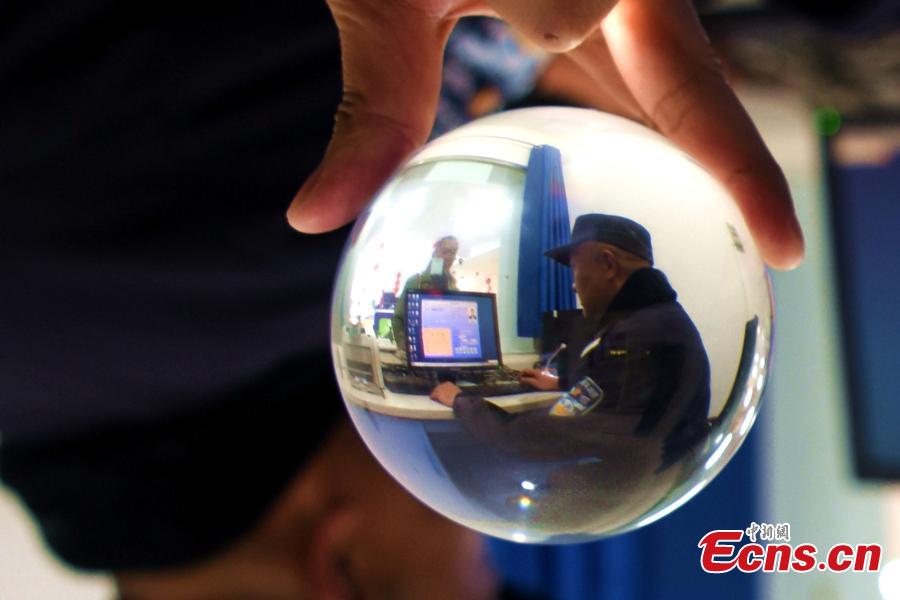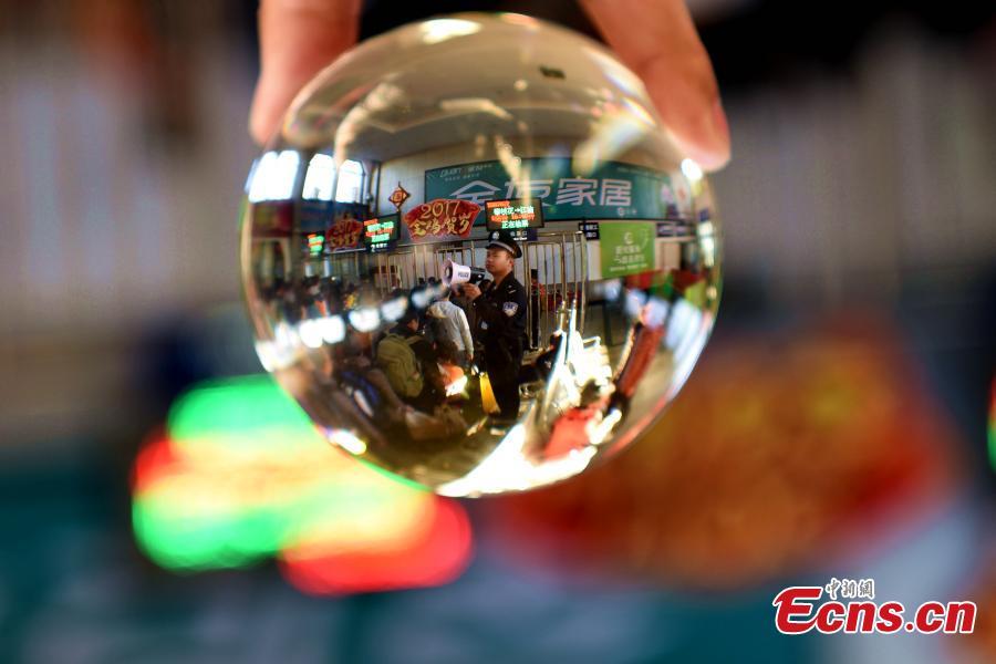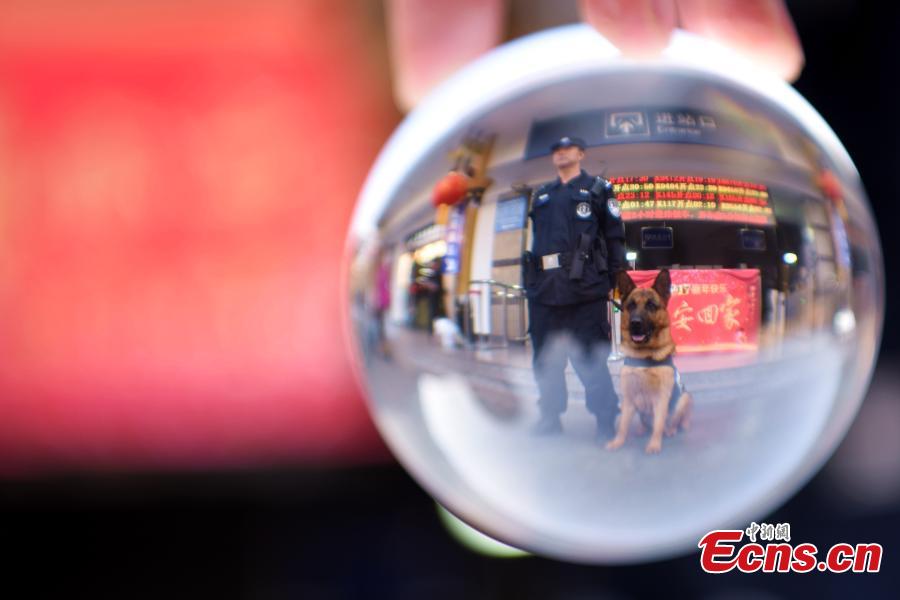 Unusual shots captured with the use of a crystal ball show police at work ahead of Spring Festival at a railway station in Xichang City, Southwest China’s Sichuan Province. A crystal ball helps photographers to capture a wide angle view. (Photo: China News Service/Yang Zubin)