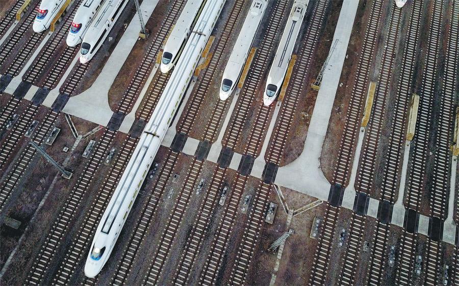 Passengers wait for their train on a platform at Hefei South High-speed Train Station on Jan. 13, 2017. (Photo//CHINA DAILY)