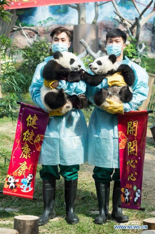 Macao's twin panda cubs celebrate Chinese Lunar New Year (1/6)
