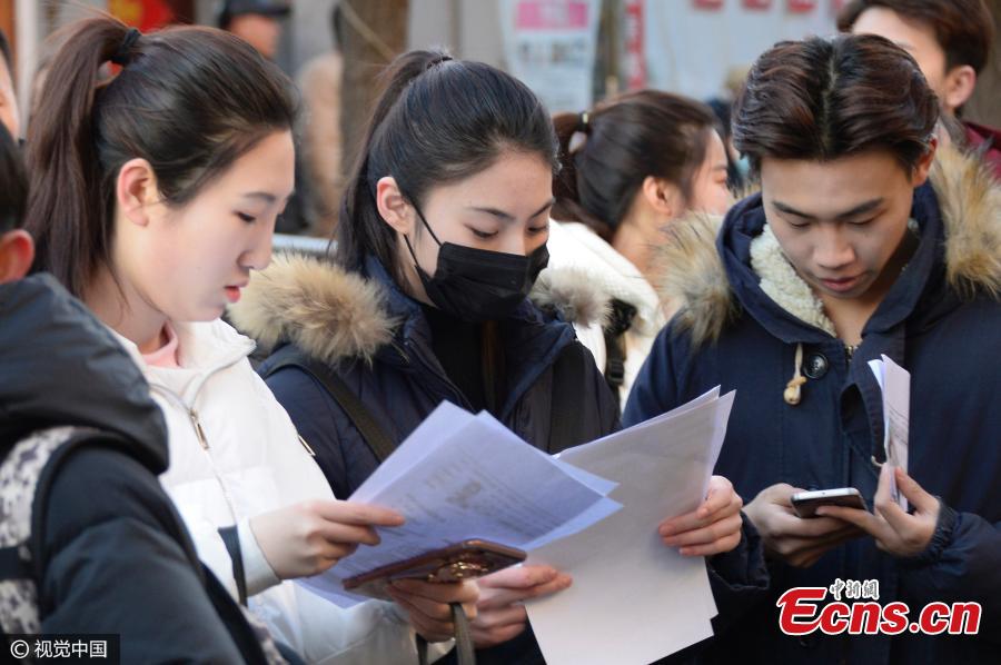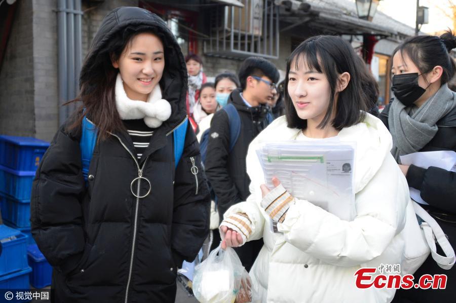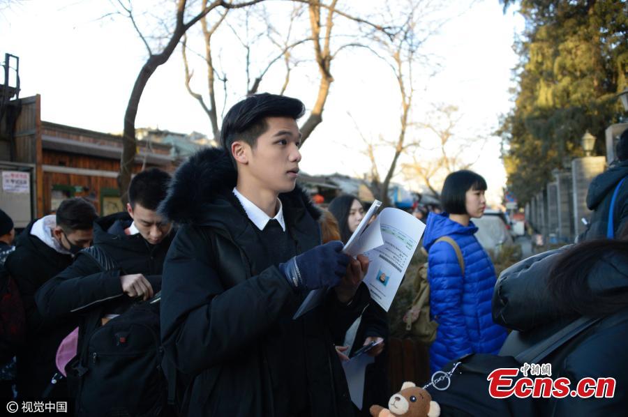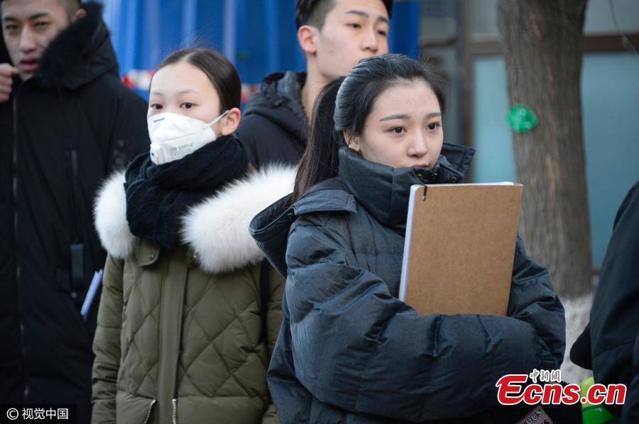 Students await their art tests at the Central Academy of Drama in Beijing, Feb 6, 2017. Many famous Chinese actors, actresses, and directors have graduated from the academy, which takes center stage during the recruitment process for new students. (Photo/CFP)