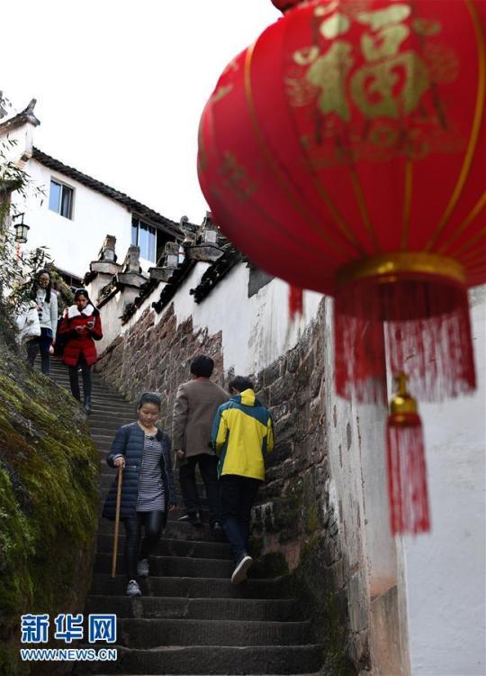 A view of Qiyunshan Village, which is located close to mountain cliffs, 585 meters above sea level, in Xiuning County, East China’s Anhui Province, Feb. 6, 2017. The mountain attracts many visitors with its Hui-style architecture, which is in contrast to Taoism buildings, as well as for the harmony displayed between Taoists and local residents. (Photo/Xinhua)