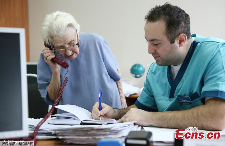 Russia's oldest working surgeon Alla Ilyinichna Levushkina, 89, in an operating room at Ryzan City Hospital near Moscow, Russia, Jan. 31, 2017. She has worked with a scalpel in her hand for 68 years and still carries out four surgeries per week. She will turn 90 in May. (Photo/CFP)