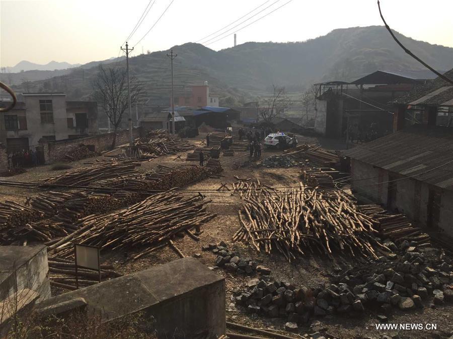 Photo taken on Feb. 14, 2017 shows the coal mine blast site in Lianyuan, central China's Hunan Province. Eight people were confirmed dead after a blast hit a coal mine in central China's Hunan Province, local authorities said on Tuesday. (Photo/Xinhua)