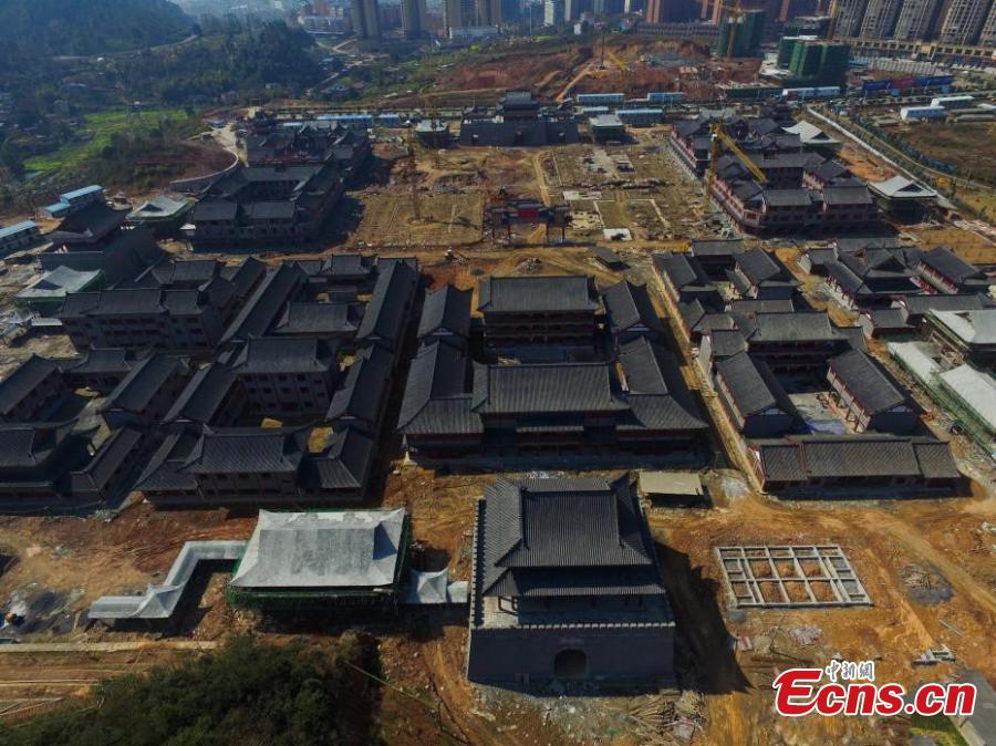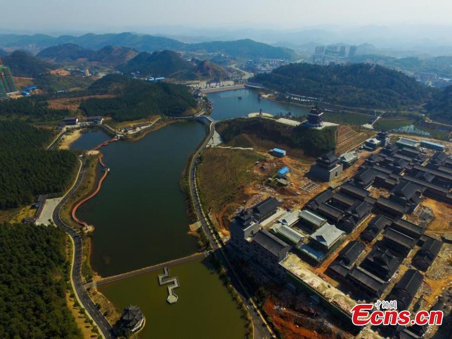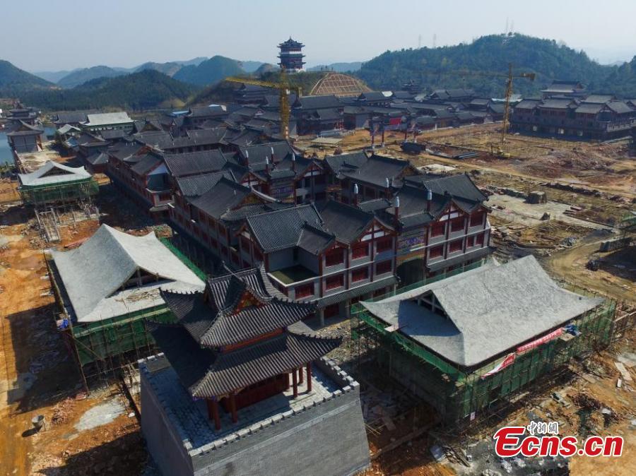 A history and culture park under construction in Guiyang City, Central China’s Hunan Province, Feb. 13, 2017. With a total investment of 500 million yuan ($73 million), the park covers an area of 144 hectares and includes temples, museums, theaters and business streets, built in ancient styles to display the city’s more than 2,000 years of history and culture. (Photo: China News Service/Ouyang Changhai)