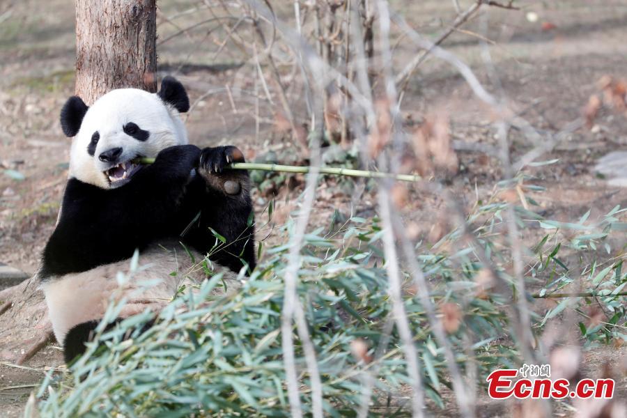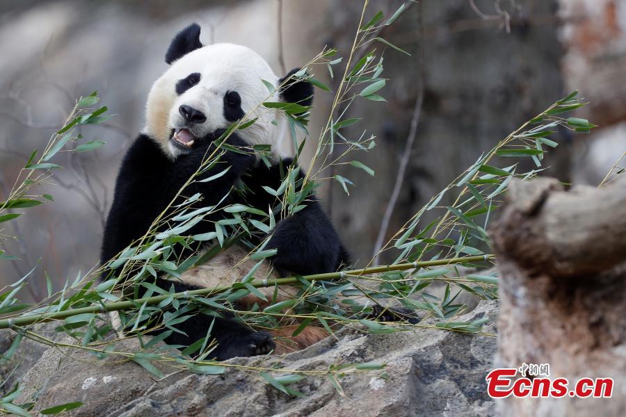 Giant panda Bao Bao eats bamboo during a farewell event at the National Zoo in Washington, DC, U.S., Feb.16, 2017. The 3-year-old panda, the first surviving cub born at the zoo since 2005, will leave the National Zoo on Tuesday. Bao Bao achieved international fame as the star of the zoo's "panda cam," which documented her birth and childhood for millions of fans worldwide. (Photo/Agencies)