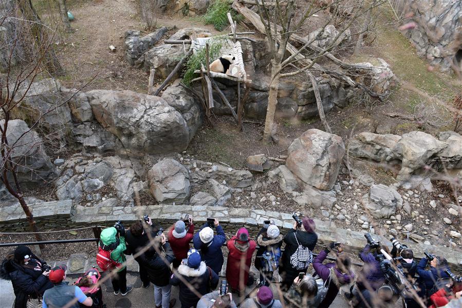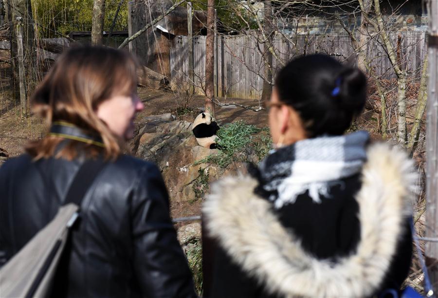 Giant Panda Bao Bao eats bamboos at the Smithsonian's National Zoo in Washington D.C., the Unite States, on Feb. 16, 2017. National Zoo holds a series of online and on-site events to bid farewell to Giant Panda Bao Bao from Feb. 16 to Feb. 20 before it departs for China on Feb. 21. (Xinhua/Yin Bogu)