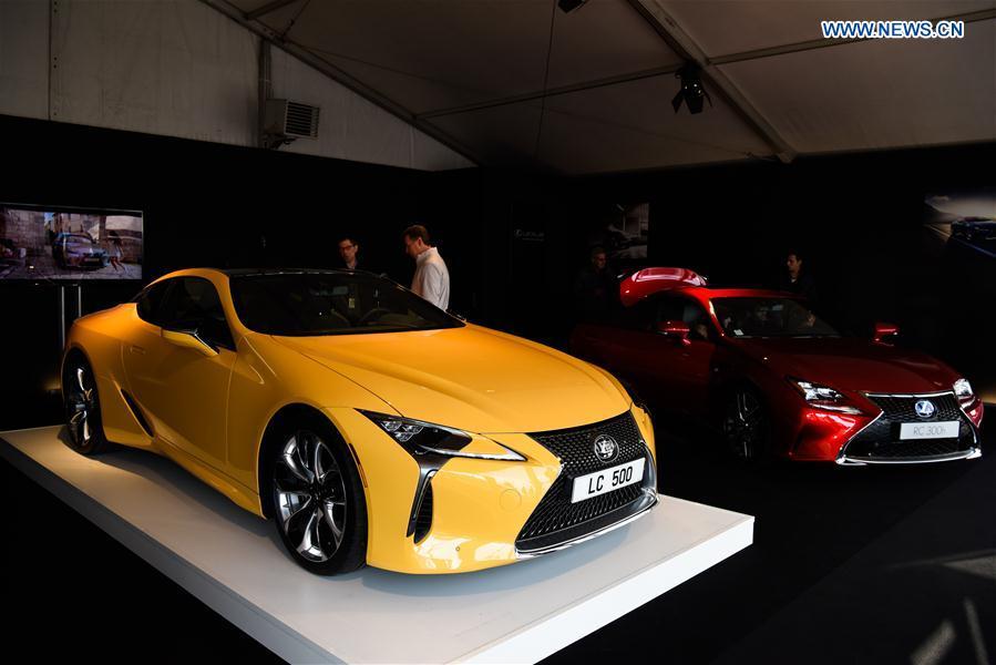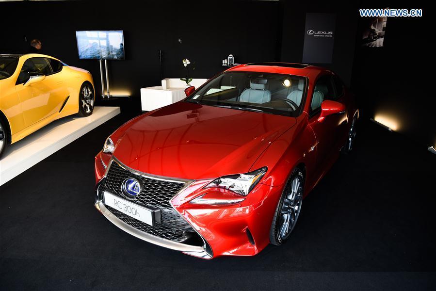 Photo taken on Feb. 16, 2017 shows a Lexus LC 500 (L) and a hybrid car RC 300h(R) in Monte Carlo, Monaco. The 4-day 1st Monaco International Auto Show (SIAM, for its acronym in French) kicked off Thursday. (Xinhua/Chen Yichen)