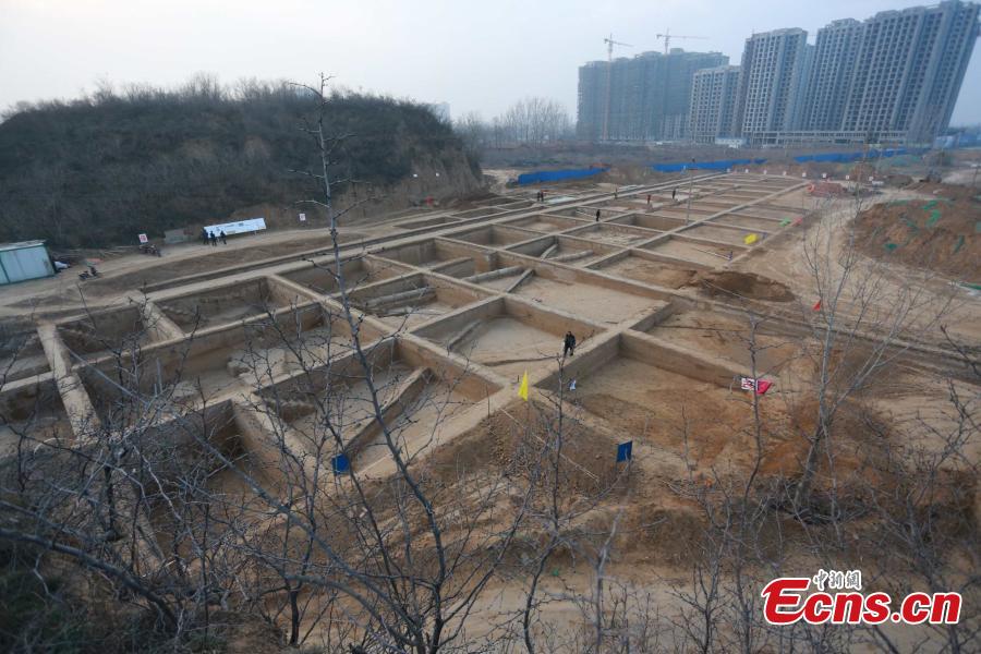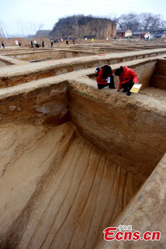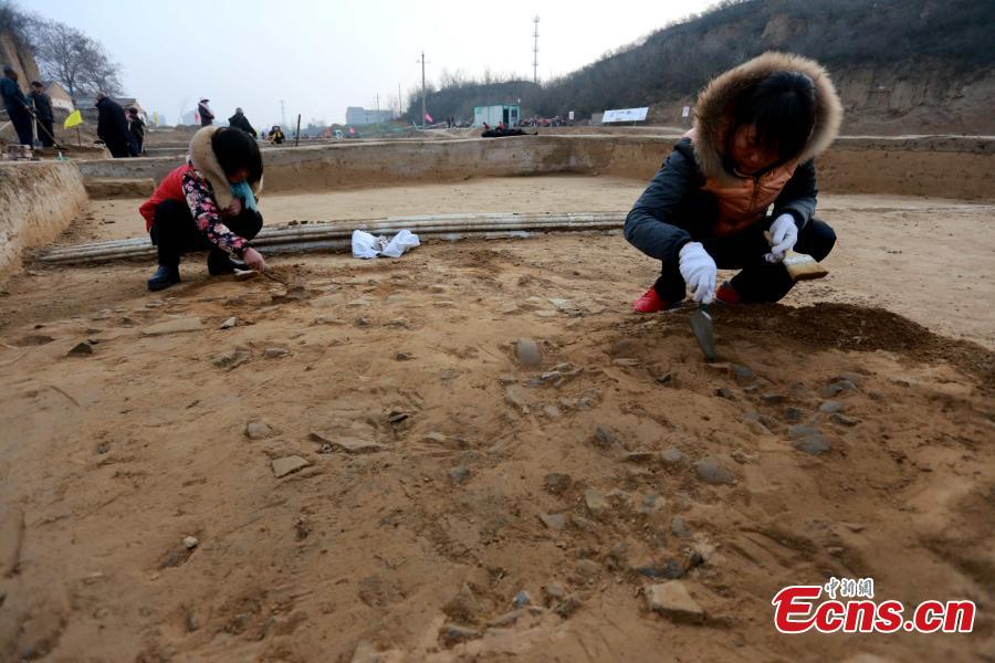 Archeologists work in the relics of Zheng Han Old City in Xinzheng City, Central China’s Henan Province, Feb. 19, 2017. New findings include a city gate and well-preserved barbican-like wencheng, an enclosure for defense outside a city gate, which are expected to contribute to the understanding of defense systems used in China’s ancient cities. The relics date from the Spring and Autumn period (770 BC to 476 BC), when the area served at the capital for the Zheng and Han kingdoms. The city wall was about 20 kilometers in circumference with nearly 20 gates. (Photo/CFP)