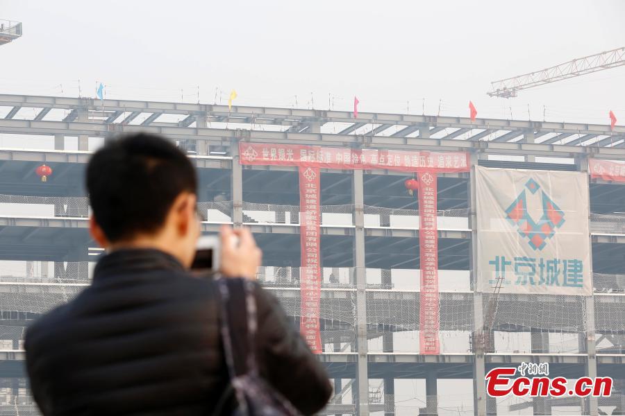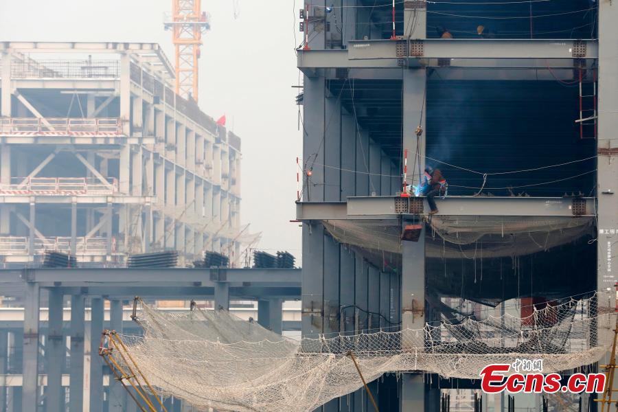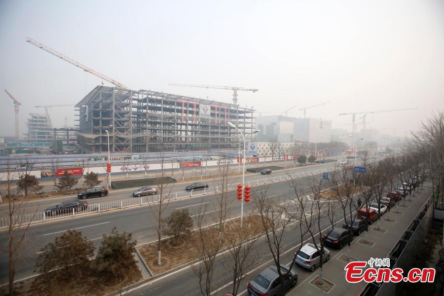 Construction goes on at the subsidiary administrative center of Beijing in its suburban Tongzhou District. Building the center in Tongzhou is one of several moves to cure "urban ills" including overpopulation, traffic congestion and smog. It is expected to relocate about 400,000 residents from the city center to the suburban district. (Photo: China News Service/Han Haidan)