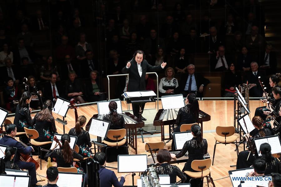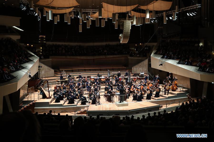 Photo taken on Feb. 20, 2017 shows the Chinese New Year Concert 2017 at Berlin Philharmonie in Berlin, capital of Germany. The Chinese New Year Concert 2017 performed by Guangdong National Orchestra of China kicked off on Monday. A series of cultural activities will be held to commemorate the 45th anniversary of the establishment of the Chinese-German diplomatic relations. (Xinhua/Shan Yuqi)