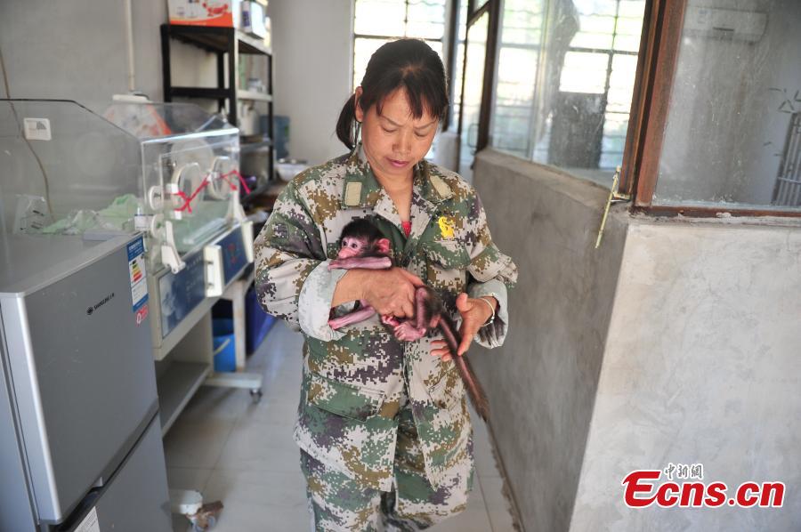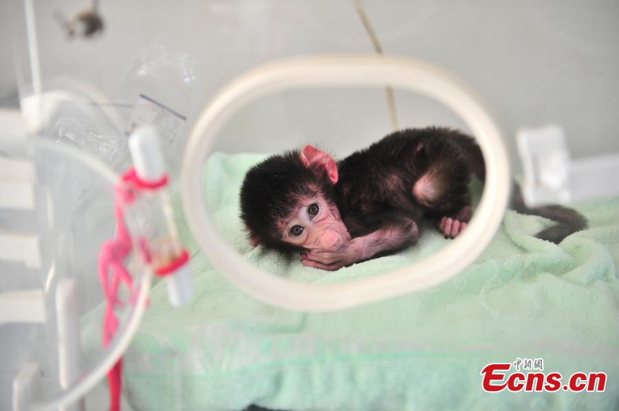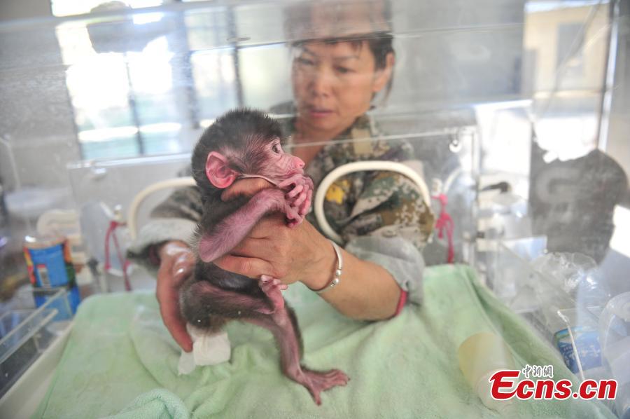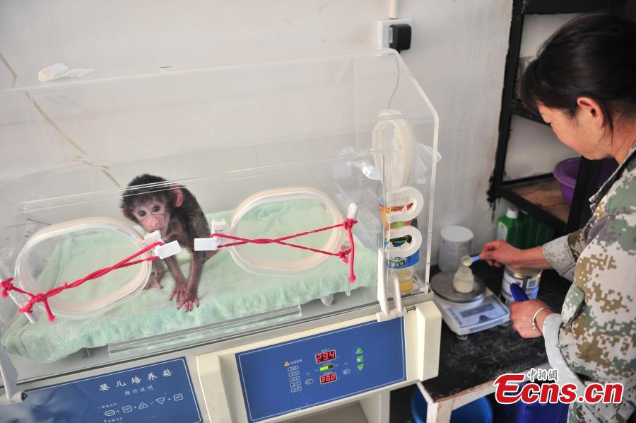 A baby baboon receives care while in an incubator at a zoo in Kunming City, the capital of Southwest China’s Yunnan Province, Feb. 20, 2017. The cub was abandoned by its mother. It was the mother's first birth. (Photo: China News Service/Liu Ranyang)