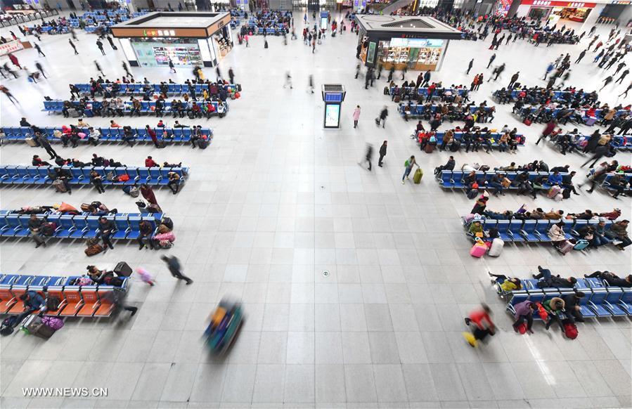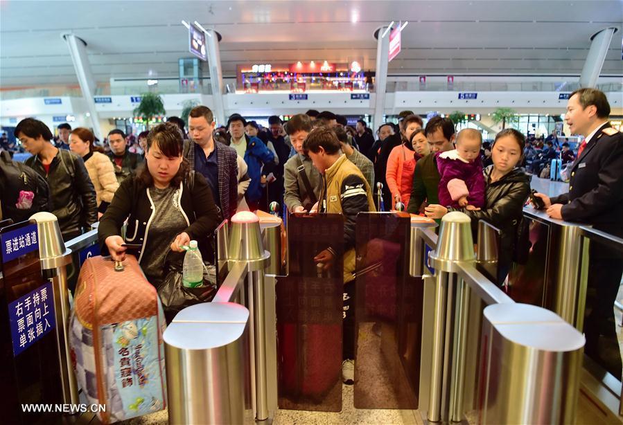 Passengers queue up to enter the waiting hall of Changchun Railway Station in Changchun, capital of northeast China's Jilin Province, Feb. 21, 2017. China saw the Spring Festival travel rush by different modes of transport between Jan. 13 and Feb. 21. Spring Festival fell on Jan. 28 this year, and is the most important festival in the Chinese calendar. (Xinhua/Zhang Nan)