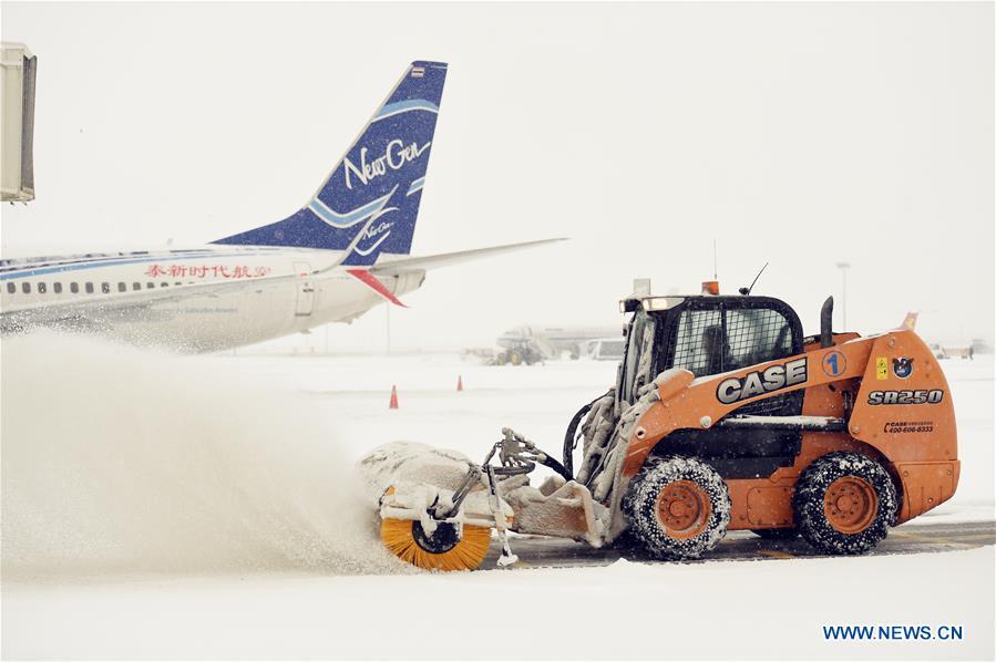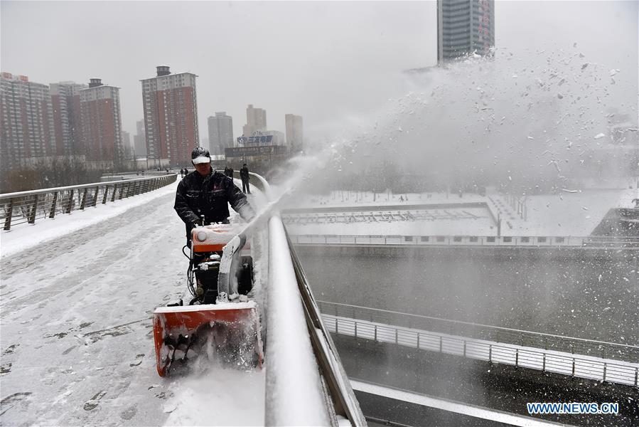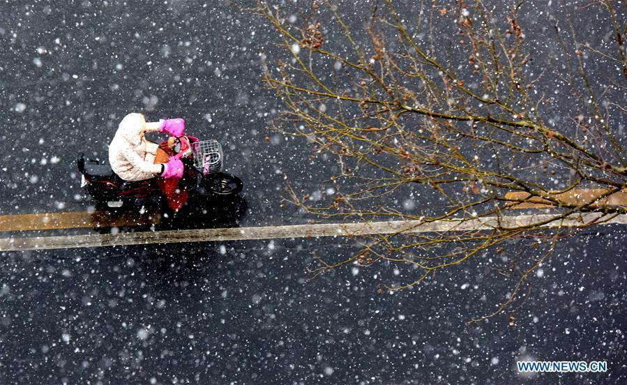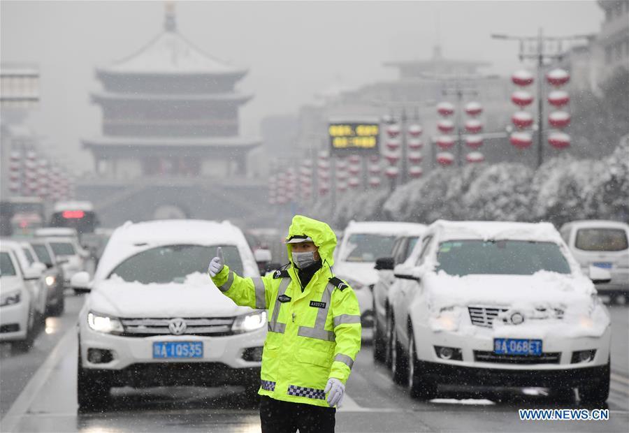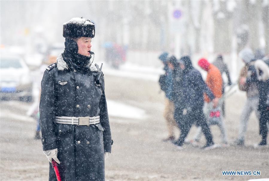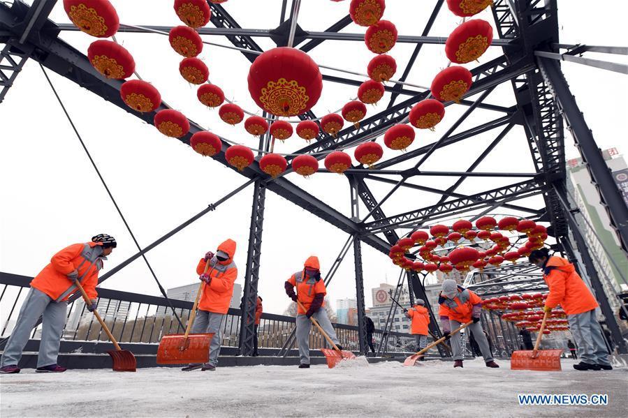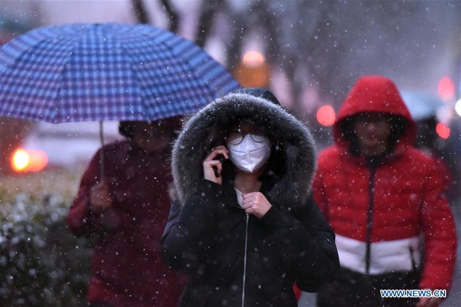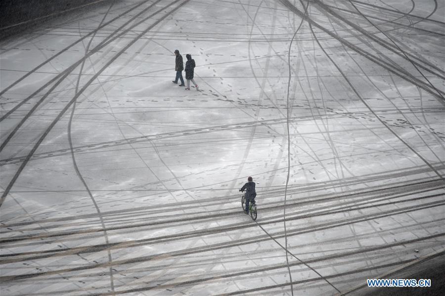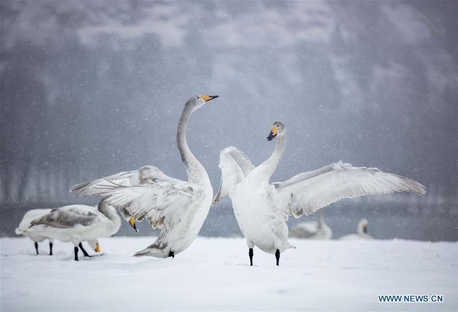 Photo taken on Feb. 21, 2017 shows swans at a Yellow River wetland in Pinglu County, north China's Shanxi Province. The National Meteorological Center (NMC) renewed its blue alert for a cold front on Tuesday, forecasting low temperatures in the country's northern and western regions. (Xinhua/Liu Wenli)
