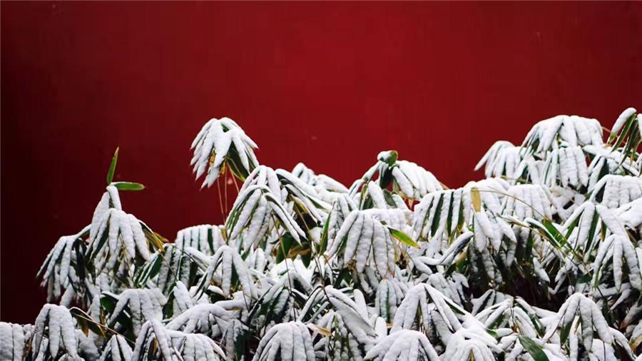 An aerial view shows the Forbidden City after a spring snow in Beijing, Feb 21, 2017. (Photo by Liu Wenlong/provided to chinadaily.com.cn)