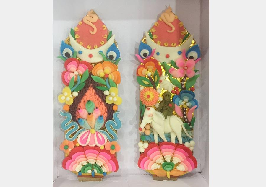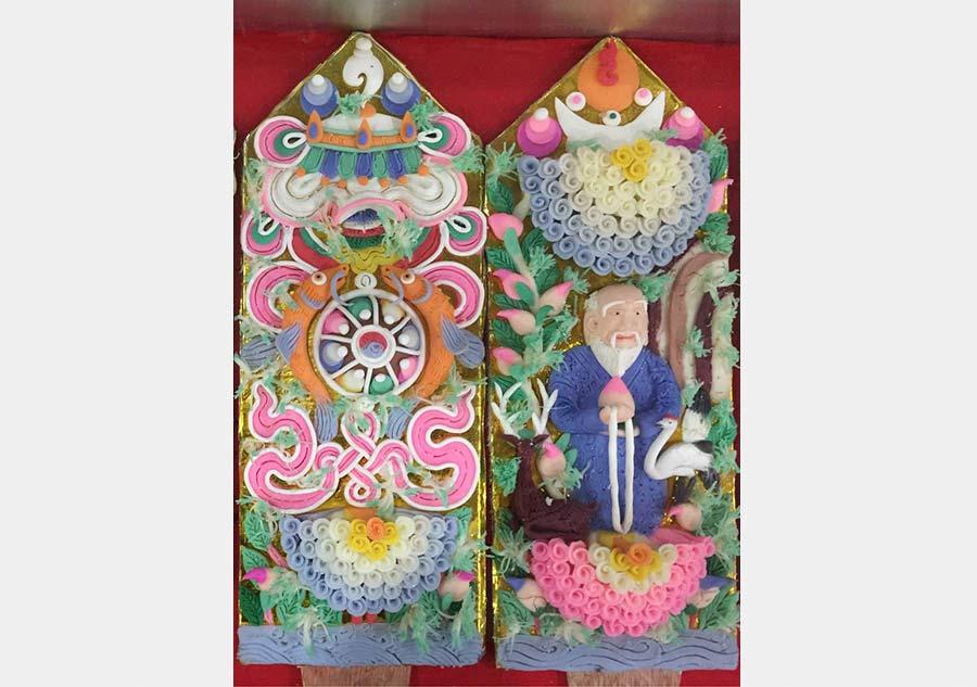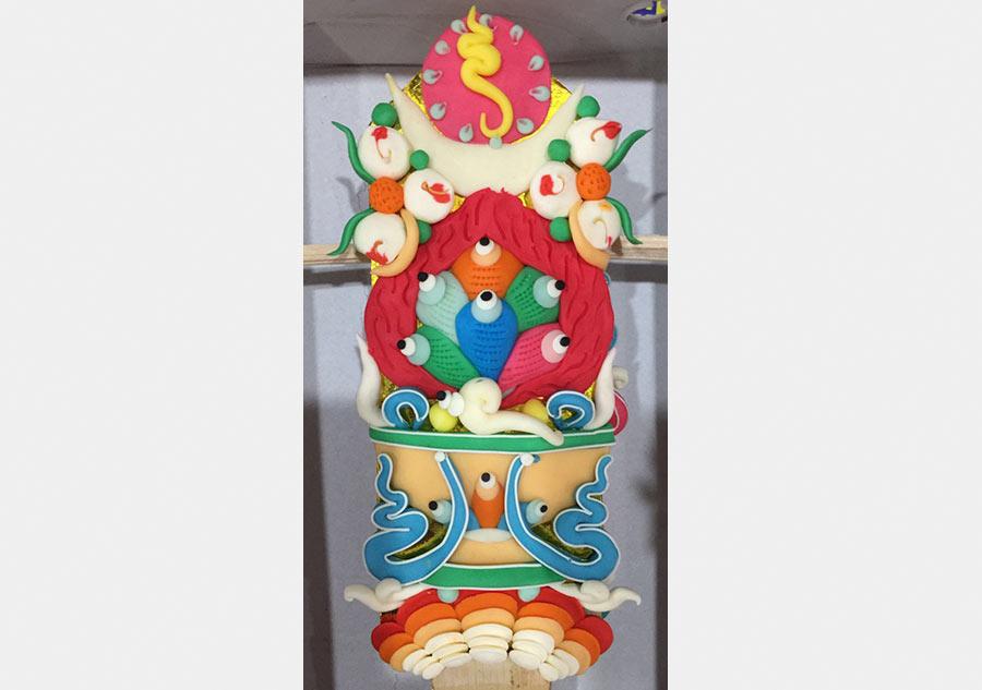 As Feb. 26 marks the Tibetan New Year, Tibetan people in China have prepared "Qie Ma" to embrace the New Year celebration, which is an auspicious sculpture made of wooden buckets with kernel cakes inside.
